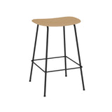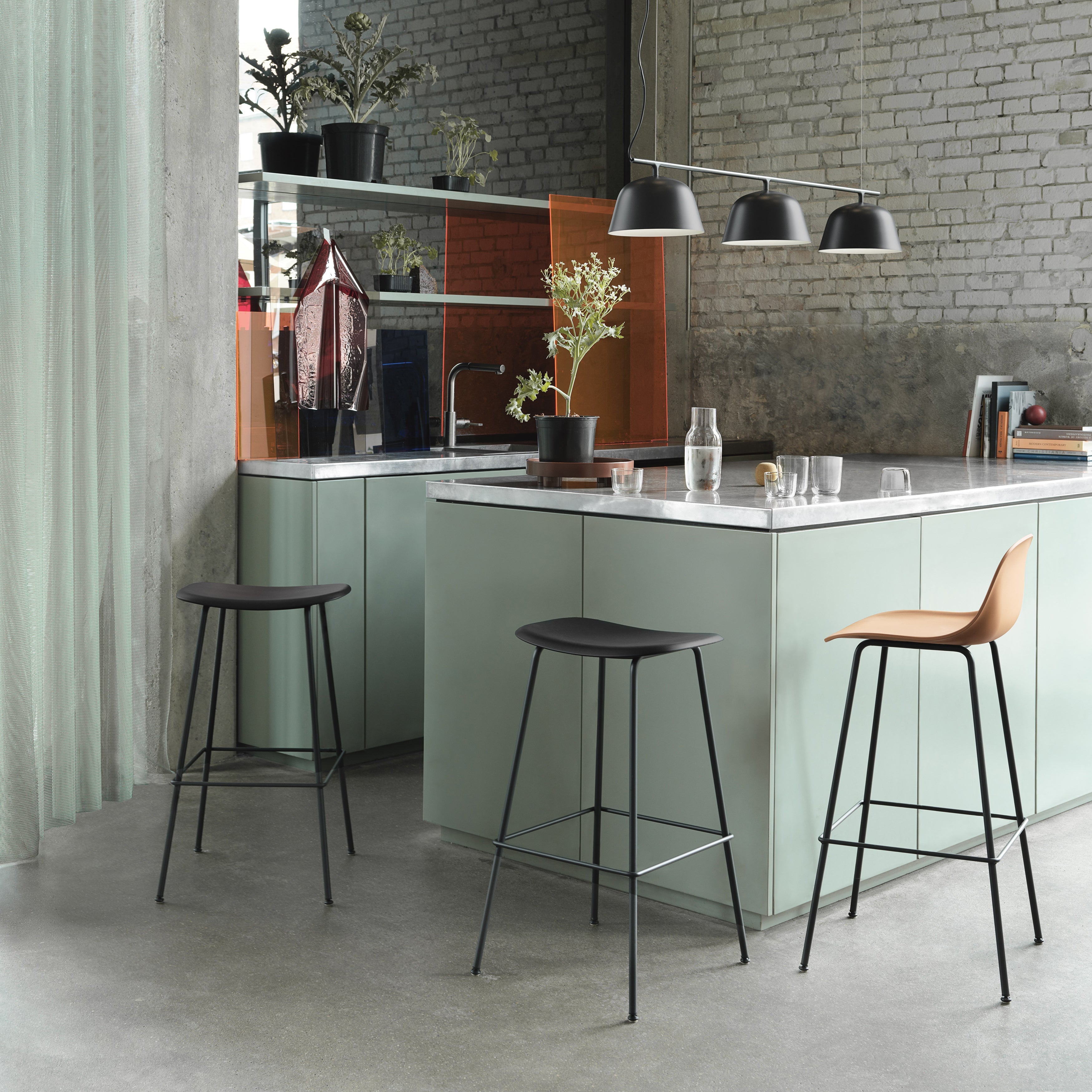 With a visually uncomplicated character, this Fiber barstool features a steel tube base with a powder-coat finish that's color-matched to its molded seat. Adhering to the DNA of Danish brand Muuto's series from designers Iskos-Berlin, this innovative riff on the iconic Scandinavian shell chair utilizes a novel plastic composite made with 25 percent wood fibers. The material has a pleasingly variegated texture and makes for sturdy but refined seating barside or at a kitchen island.