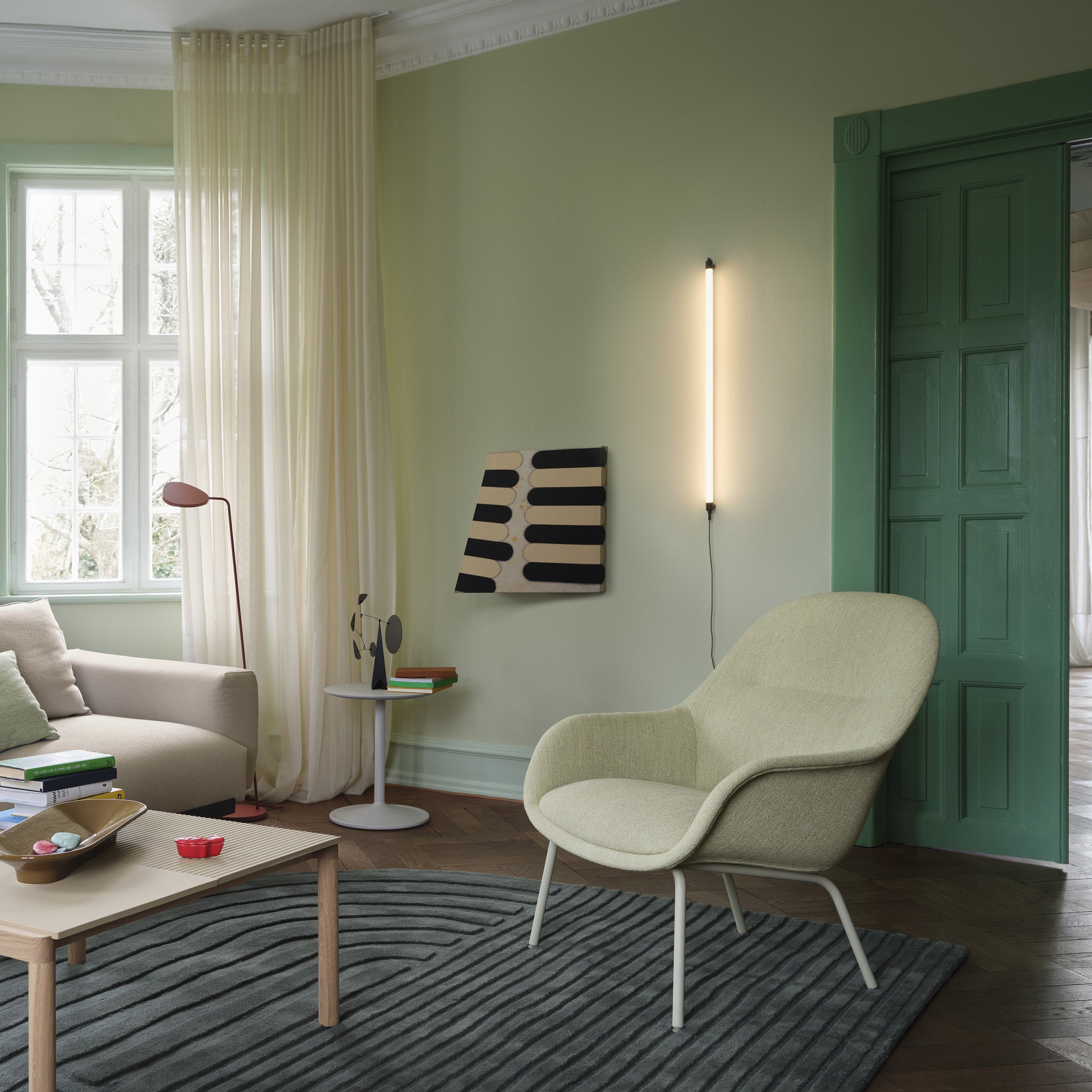 The Muuto Fiber Lounge Armchair with Tube Base features a wide, low-profile seat and a gently curved shell, designed to offer a relaxed and comfortable seating experience. The shell is made from 100% recycled plastic, reinforced with strength-enhancing additives and up to 25% wood fibers, giving it a matte texture and soft touch. The chair's sculptural simplicity is highlighted by its powder-coated steel tube base. Available in a range of upholstery options, including textiles and leather, it adds a refined touch to both home and public spaces.