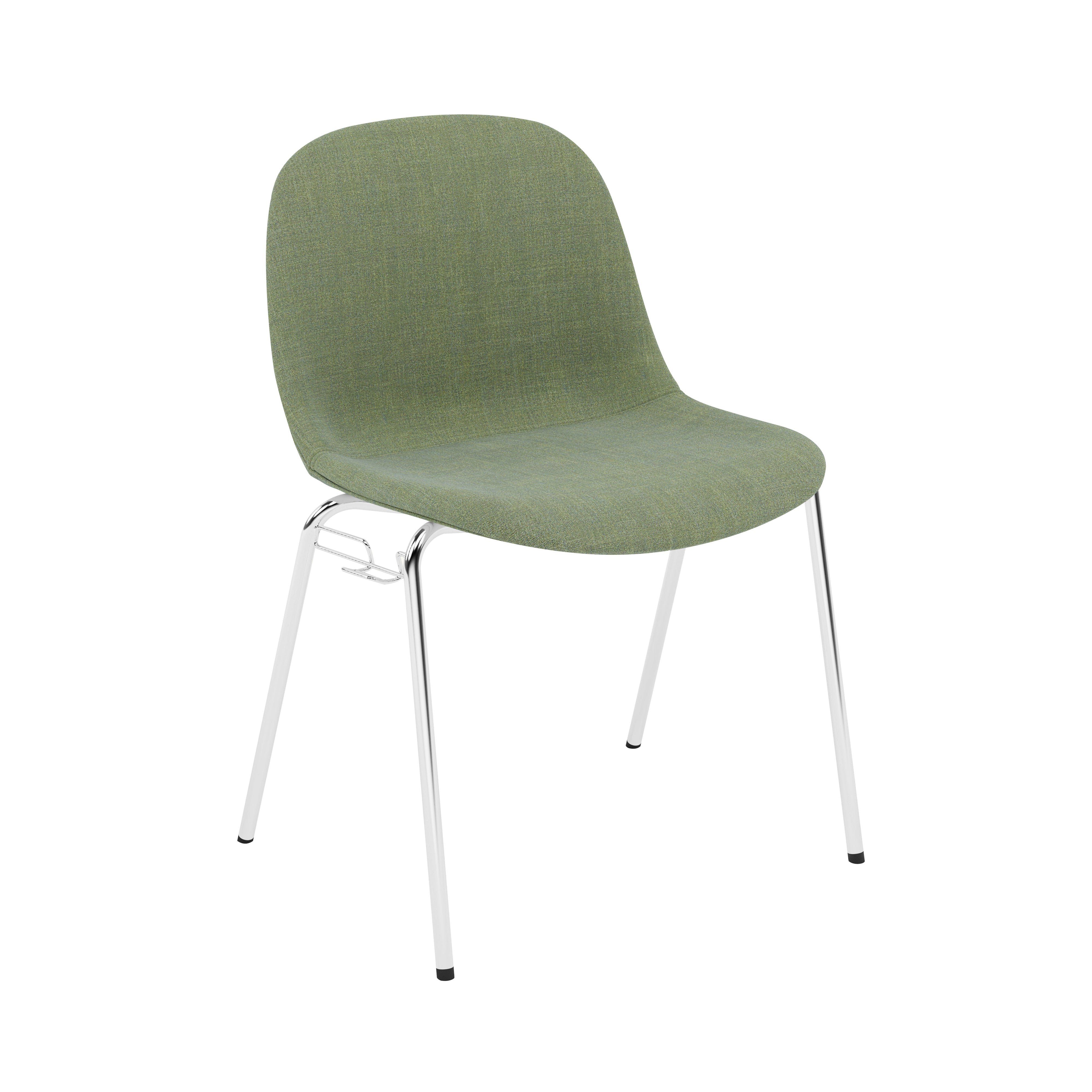 A pre-mounted linking device keeps this upholstered version of Muuto's signature Fiber seating aligned in multiple configurations. From Danish designers Iskos-Berlin, the side chair is also stackable, supported by its chrome base to avoid pressure marks. Ideal for contract use, the design combines well-padded comfort with an appealing take on the forever-classic molded chair.