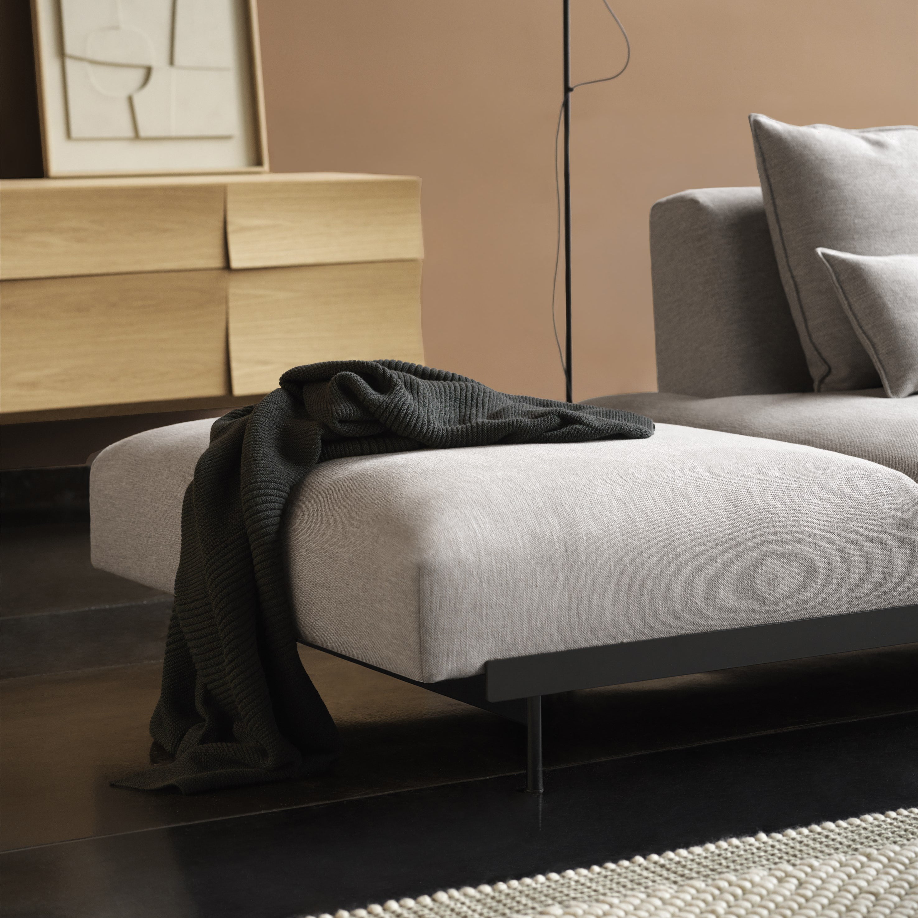 With In Situ, designers Anderssen & Voll say they meld "the grandeur of traditional Italian sofas with the refined simplicity of Scandinavian design." Working with Copenhagen brand Muuto, the Norwegian studio arrived at a distinctive modular scheme, with 30 prearranged configurations based on the 9 different seating styles and 2 loose cushions. A powder-coated steel frame runs along the seat and back of the sofa and visually unifies the separate units. In Situ's crisp profile and deeply comfortable proportions are realized with wood construction and foam, wadding, and fiber ball fill.