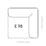 - Corner: 27.6" h x 42.1" w x 42.1" d (70x107x107cm)