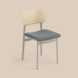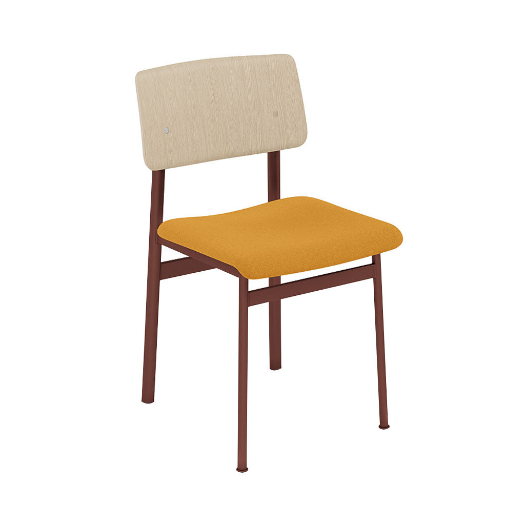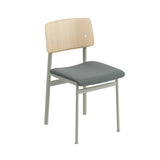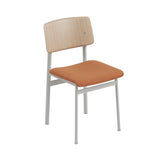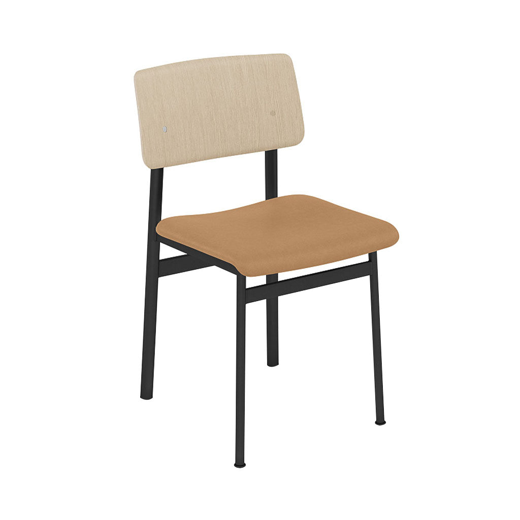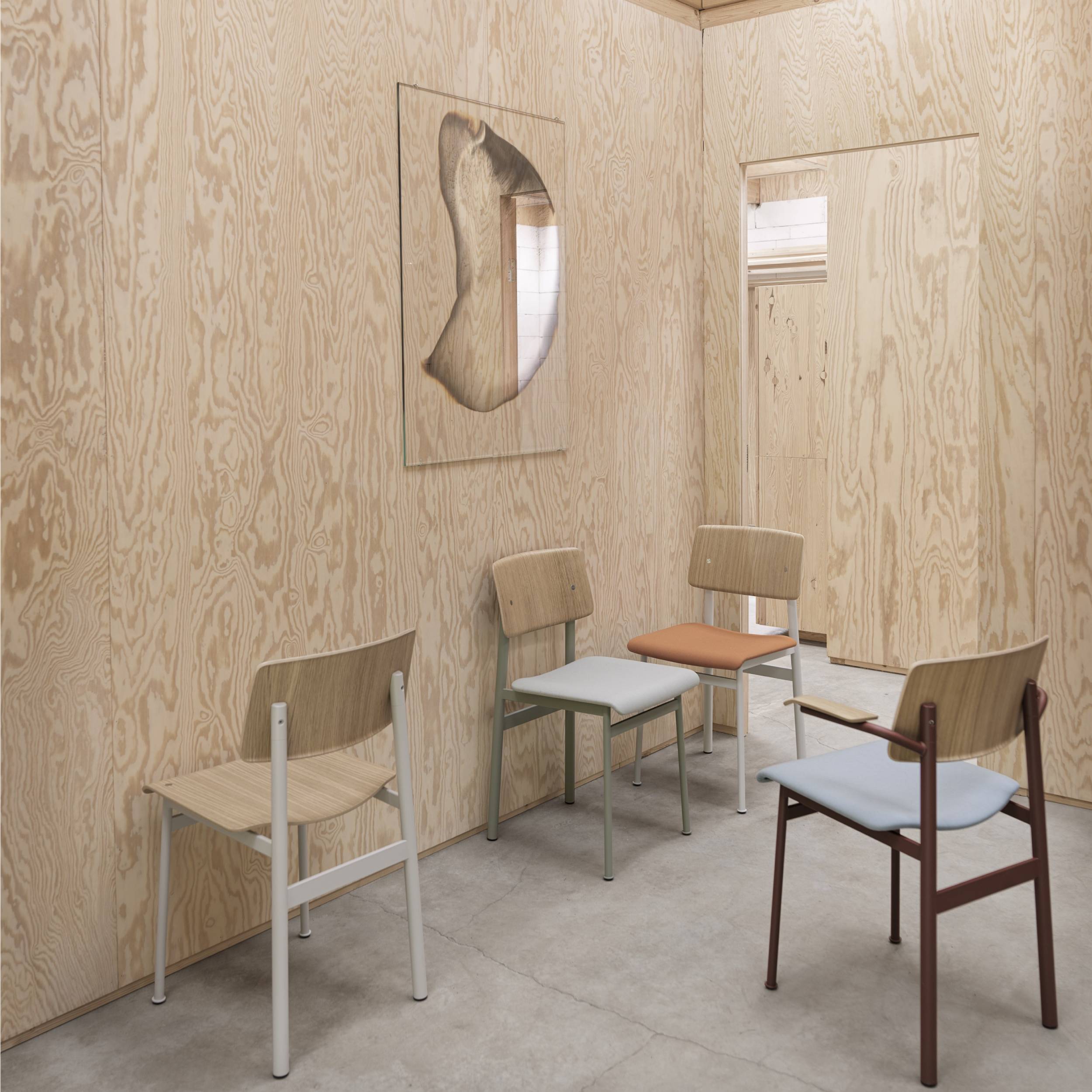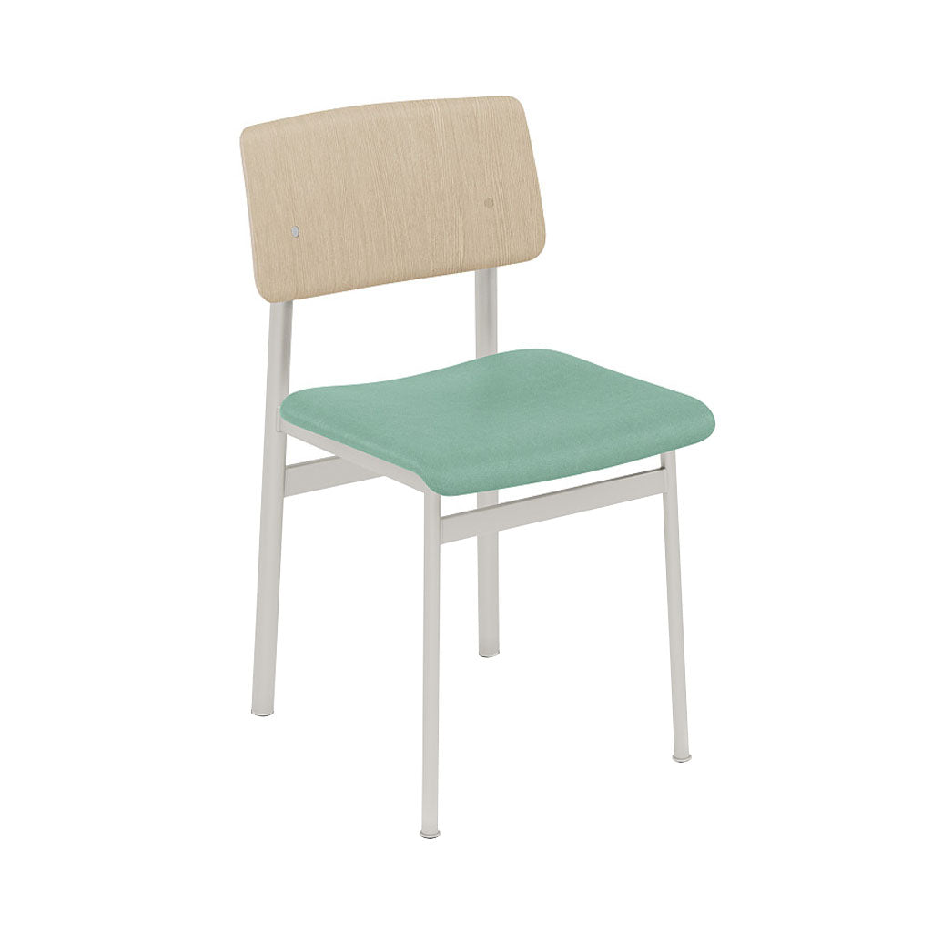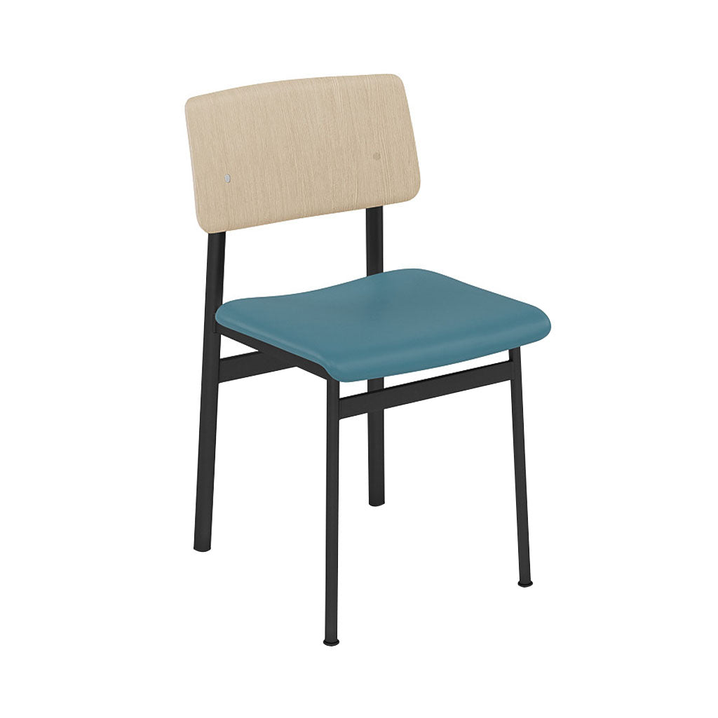 An upholstered seat adds a bespoke option to Muuto's versatile seating inspired by industrial environs. Loft Chair features compatibly contrasting materials, with its angular frame in powder-coated steel and comfortably curved backrest and seat formed in lacquered oak veneer. Thomas Bentzen's design has a welcome character while still providing all-purpose functionality and everyday durability for high-impact settings such as restaurants, meeting rooms or dining areas in the home.