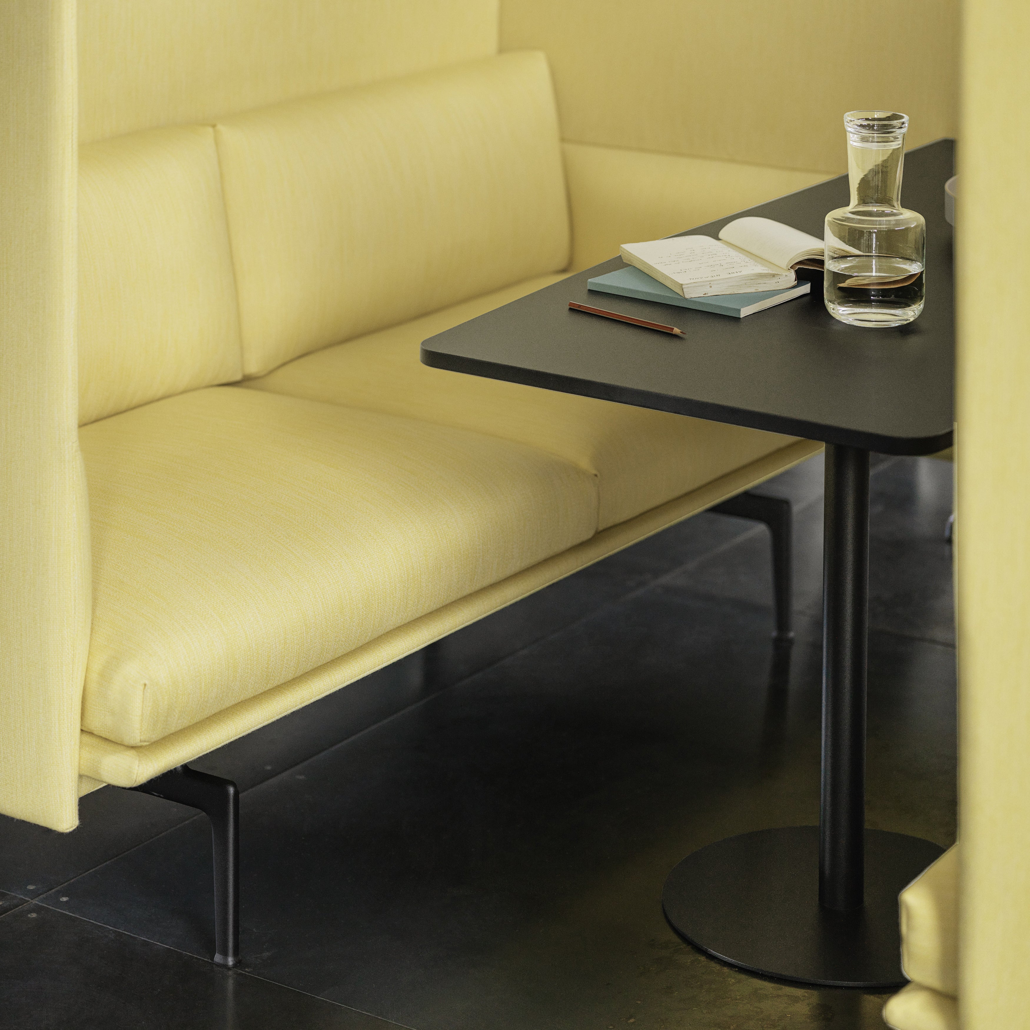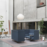 Incorporating a pair of Outline 3-seaters, this Highback Cabin version offers a roomy enclosure meant to create a sense of focus and immersion for group activity within larger environs. With its soft, deep seated comfort and a clean-lined upholstered exterior, Muuto creates a complete environment that suits open-plan areas, hospitality settings, offices or public spaces alike.