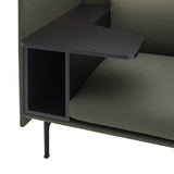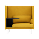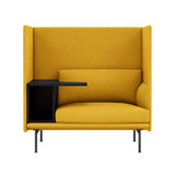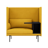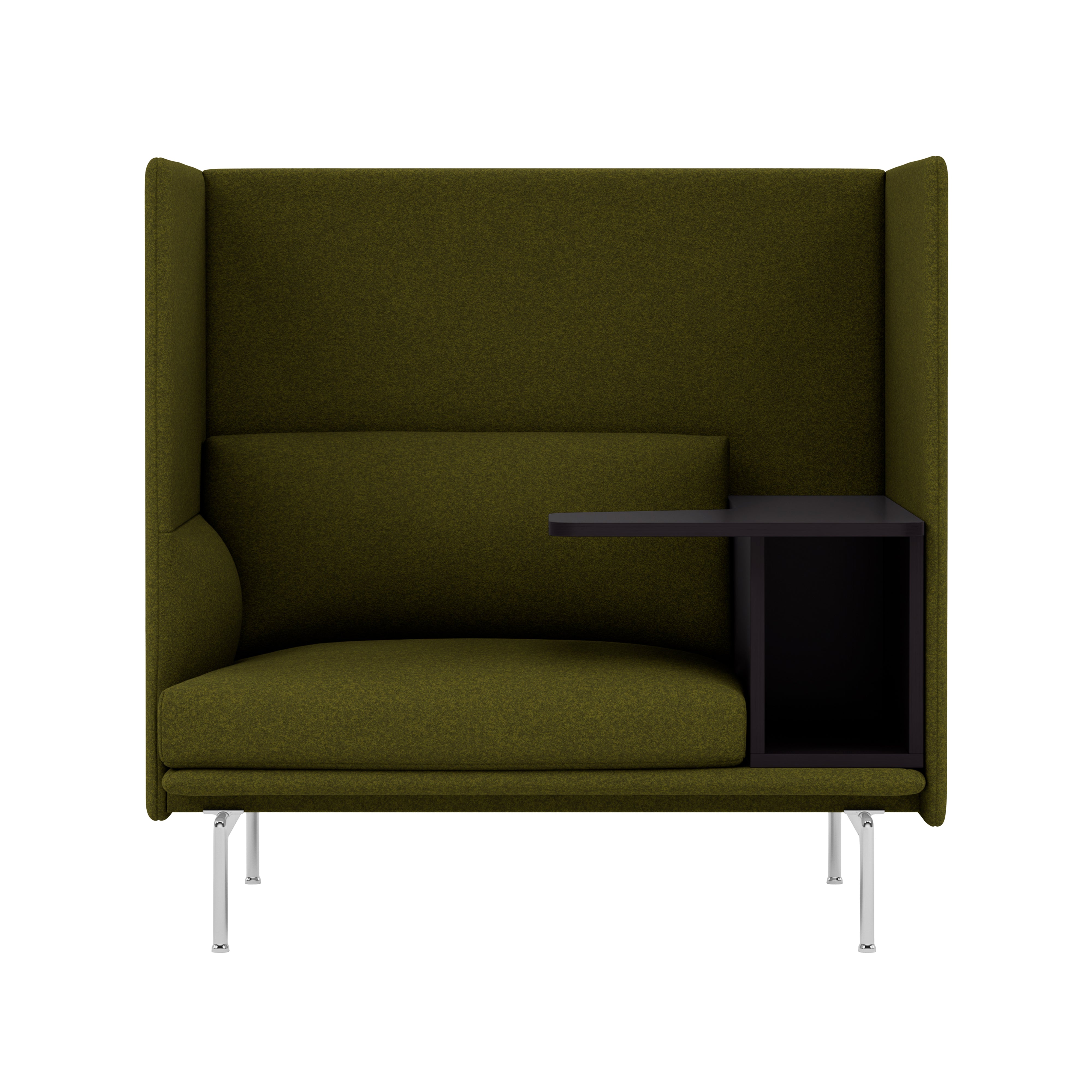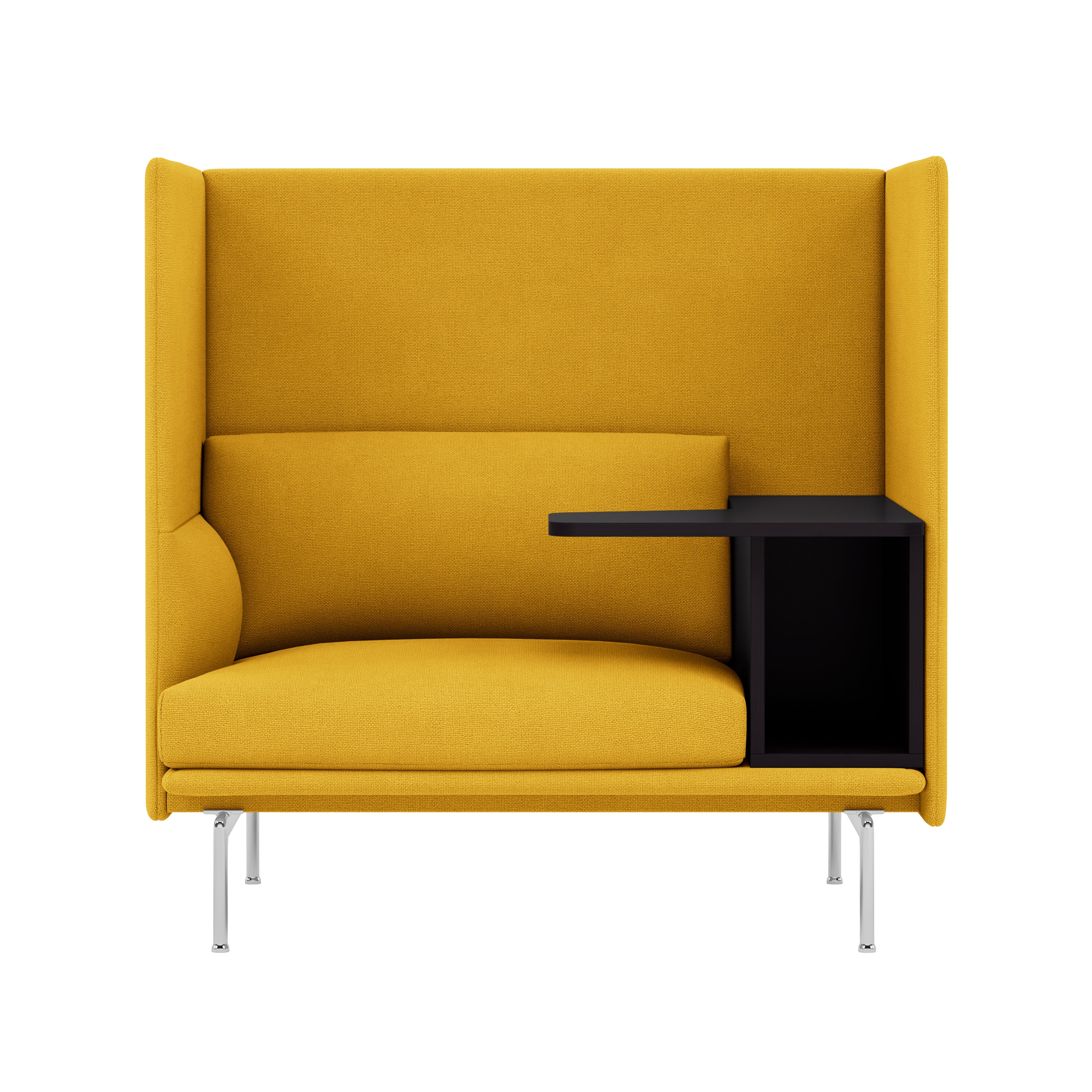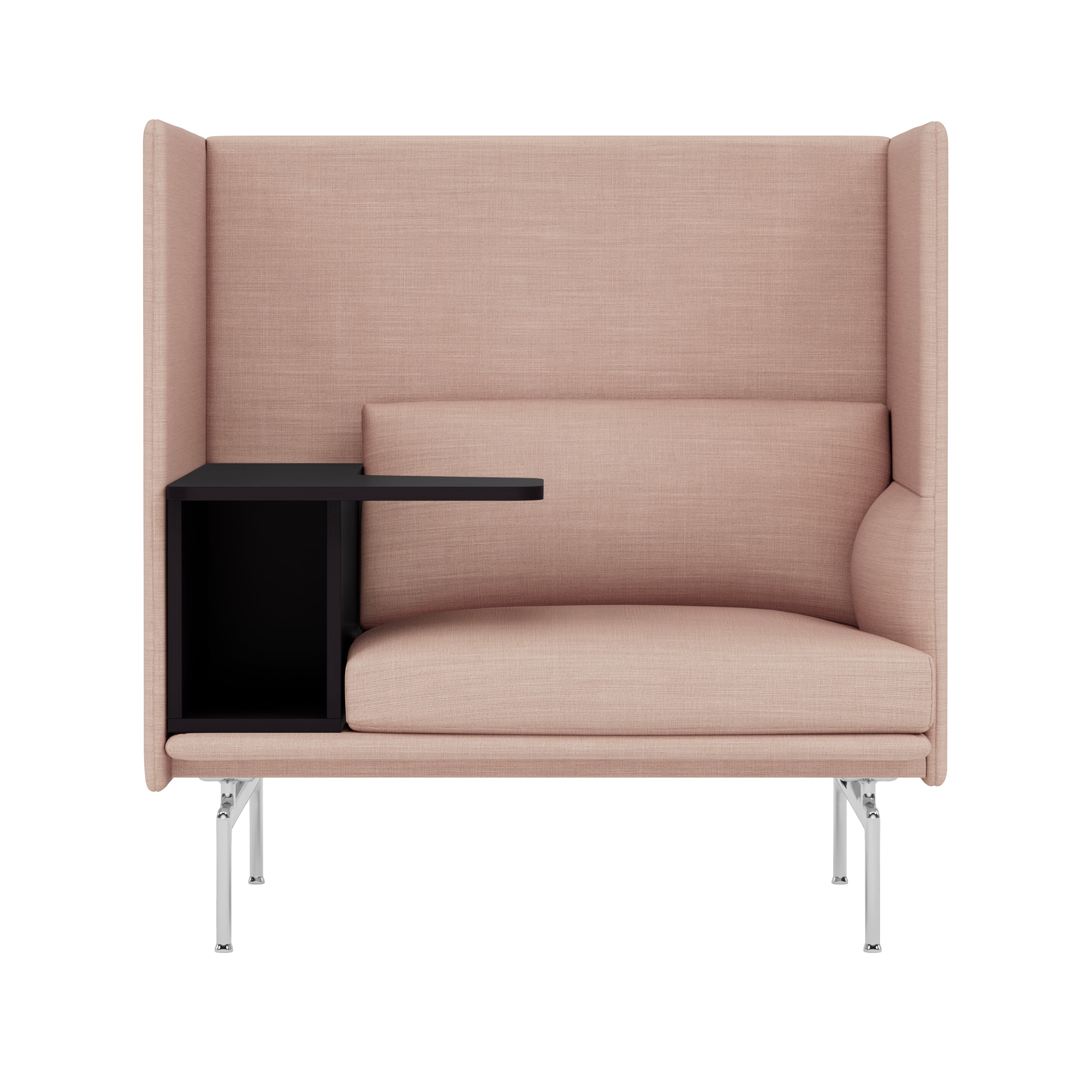 Highback Work extends the clean lines of the Outline seating series, creating an acoustic and spatial enclosure with an integrated desk-storage cubby and handy cable outlet. With a choice of premium stock upholstery selections, the seating is available with left or right orientation and features durable wood and steel construction, cold-foam fill and black powder-coated or polished aluminum legs. The work table in black MDF with a matte lacquer finish makes it an ideal fit in any open-plan space, hospitality setting or workplace.