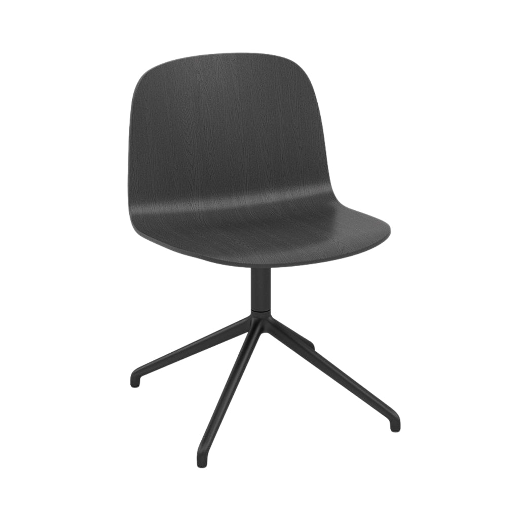 Automatic swivel-seat return brings added ease and functionality to Visu Wide, the slightly larger version of Muuto's handsome molded-wood chair. Scaled at about 4 centimeters wider and deeper than the standard model, its generous proportions and long-wearing comfort are welcome in dining, office or conference environs. Helsinki designer Mika Tolvanen's signature chair combines thoughtful ergonomics and the appeal of natural woodgrain, with a powder-coated aluminum base.