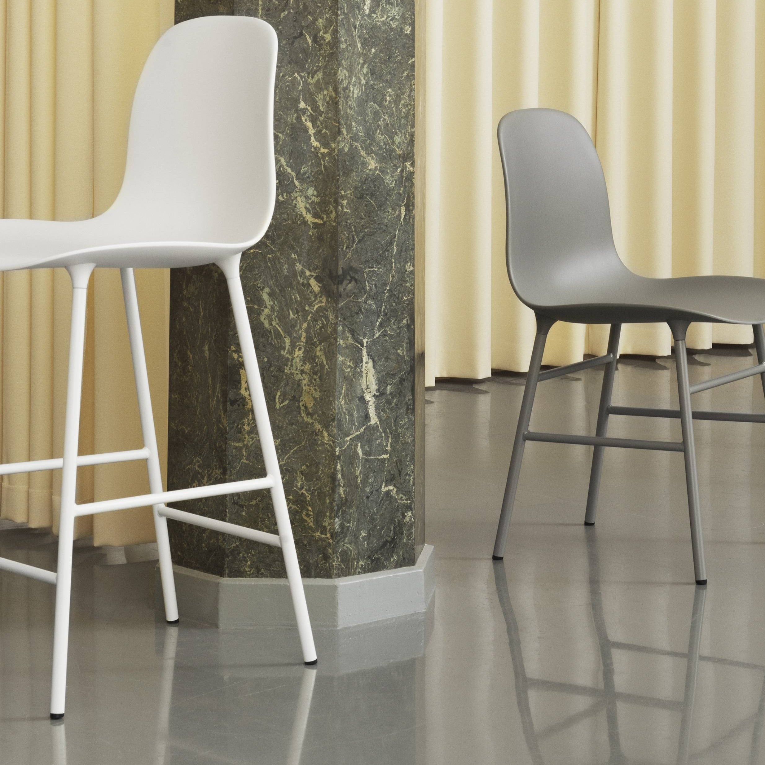 Simon Legald’s signature shell seating for Normann Copenhagen adds a high stool in bar or counter height. Noted for its seamless, sleek look, the curved plastic seat meets the lacquered steel frame with unobtrusive molded cup joinery. With a choice of armchair or armless versions in a series of monochrome hues, the design reflects the high quality craftsmanship and renowned Scandinavian simplicity.