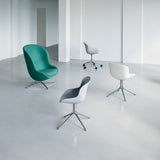 A swivel option makes Copenhagen designer Simon Legald's seating Hyg particularly suitable for locales like conference rooms and restaurants. In a choice of silver or black aluminum, the rotating base adds increased utility to the chair's expansive proportions. Inspired by the Danish notion of hygge, the sculpted shape provides for a range of comfortable positions as well as a sense of embracing security with its signature raised seat edge.