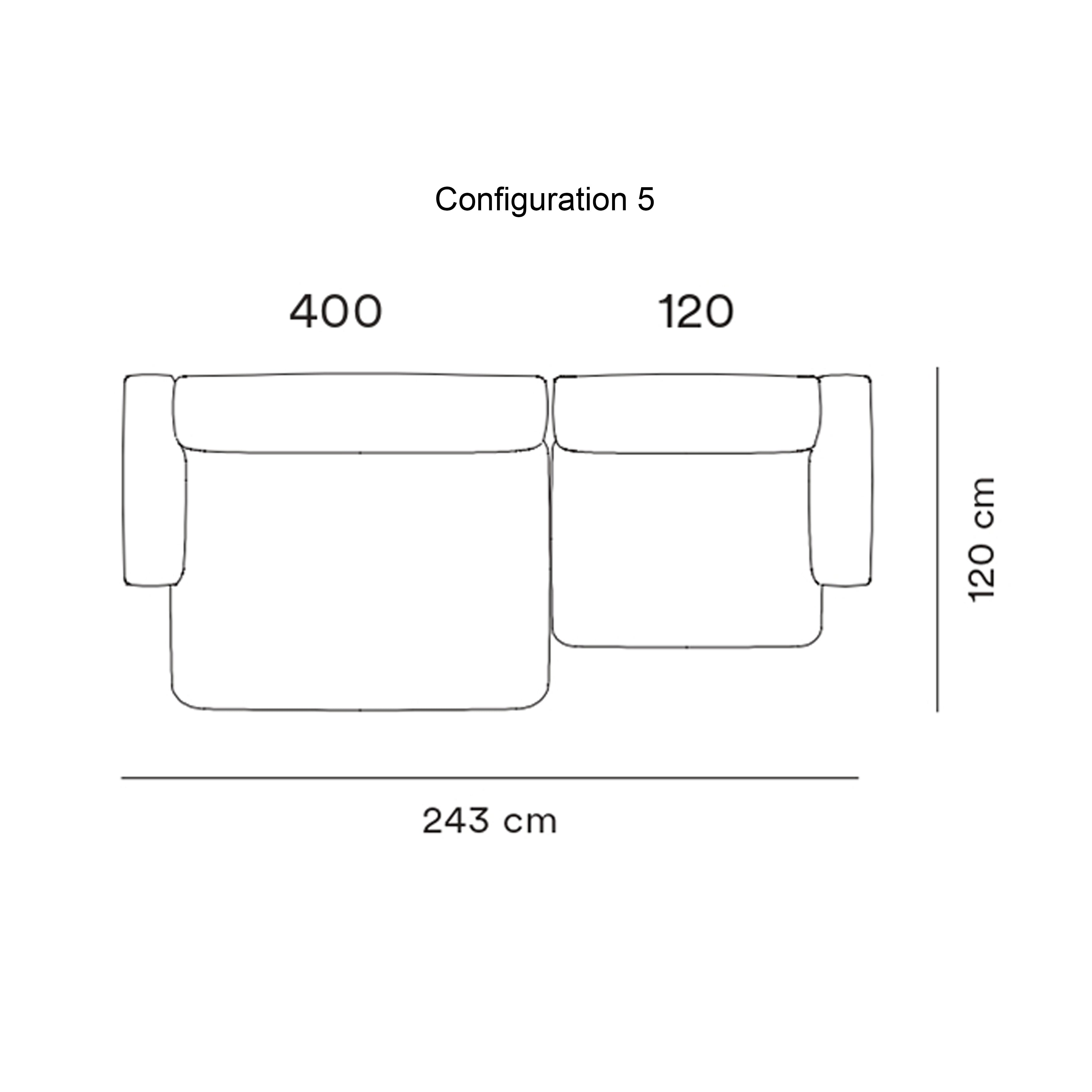 - Configuration 5: 26.4" h x 95.7" w x 47.2" d (67x243x120cm)