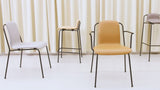 Designer Simon Legald's modernist Studio template expands with this bar and counter stool for Normann Copenhagen. With its signature flowing lines, the slender black frame graphically complements the molded wood-veneer shell. More than just an eye-catching silhouette, the ergonomic seat is also deeply comfortable. And the stool is handily stackable when not in use—ideal for hospitality areas or educational venues—and the steel frame makes it easy to grab hold of and move around.