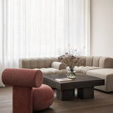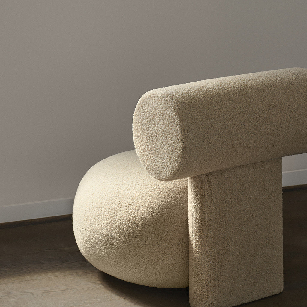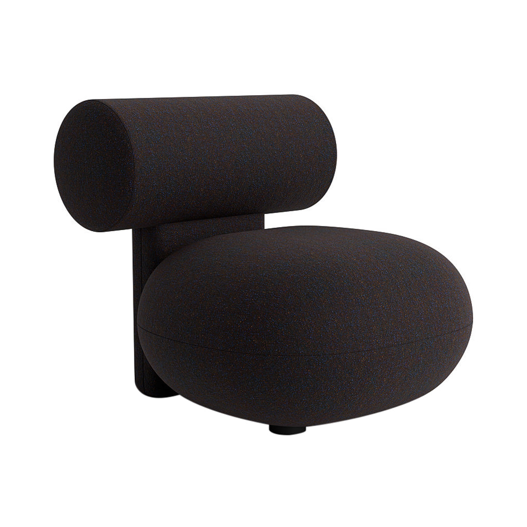 The Fully Upholstered Hippo Lounge Chair offers a soft, enveloping seating experience, with its entire frame covered in a curated range of luxurious fabric. Designed by Kristian Sofus Hansen and Tommy Hyldahl, this chair maintains the playful, rounded shapes characteristic of the Hippo series. The fully upholstered seat and back are generously padded with foam, making it exceptionally comfortable. The distinctive wooden legs, also upholstered in fabric, add to the chairs cohesive look and give it a modern, sculptural feel.