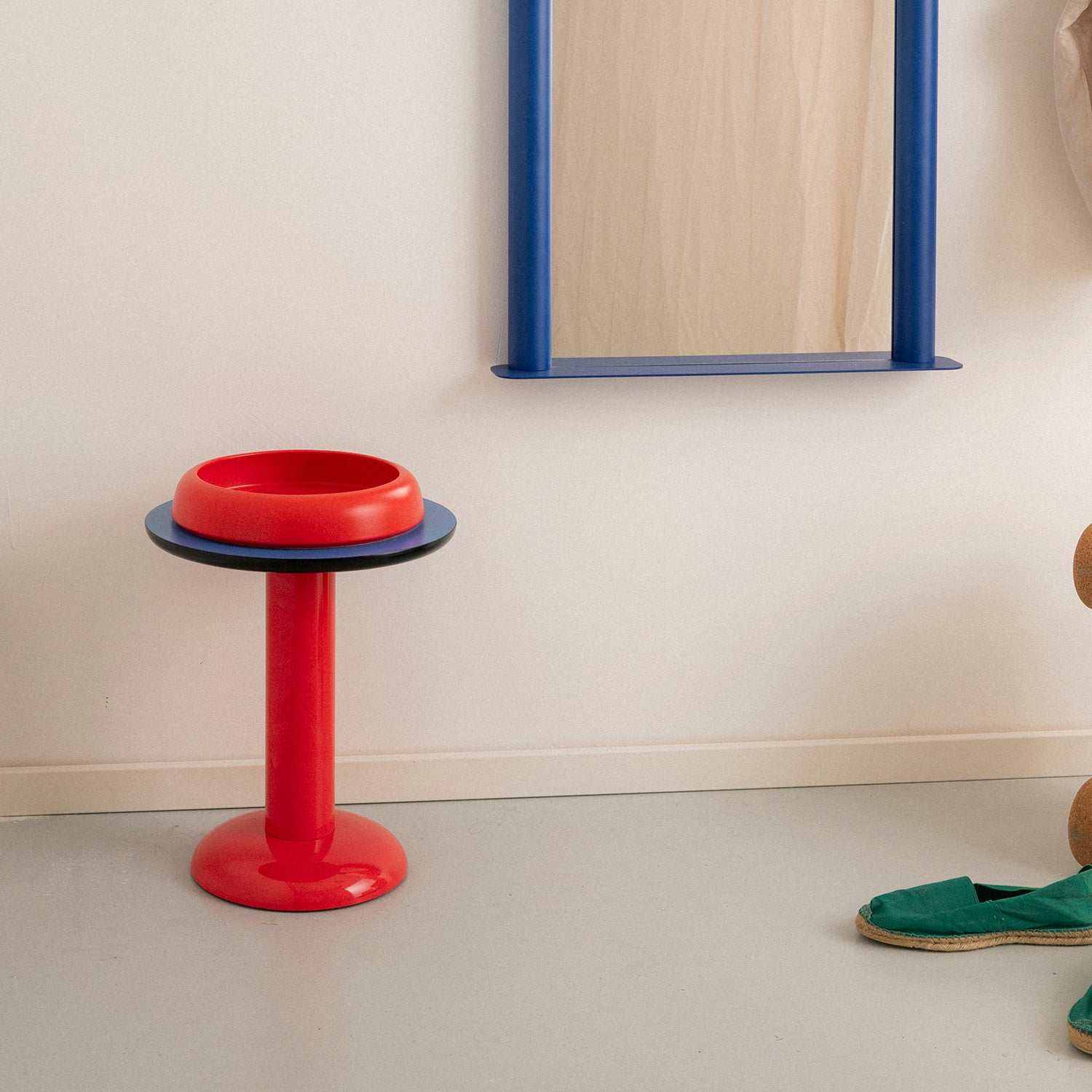 The Thing Table, created through the collaboration of George Sowden with Raawii’s co-founders Bo Raahauge Rasmussen and Nicholai Wiig-Hansen, debuted in 2022 as a versatile, personality-driven object. Made almost entirely from recycled aluminium and with silicone feet for stability. Shipped flat-packed with hardware included and easily assembled with simple bolts. Defined by playful proportions, contrasting colours, and a sculptural clarity, the design shifts effortlessly between table, stool, or side surface—making it as expressive as it is practical.