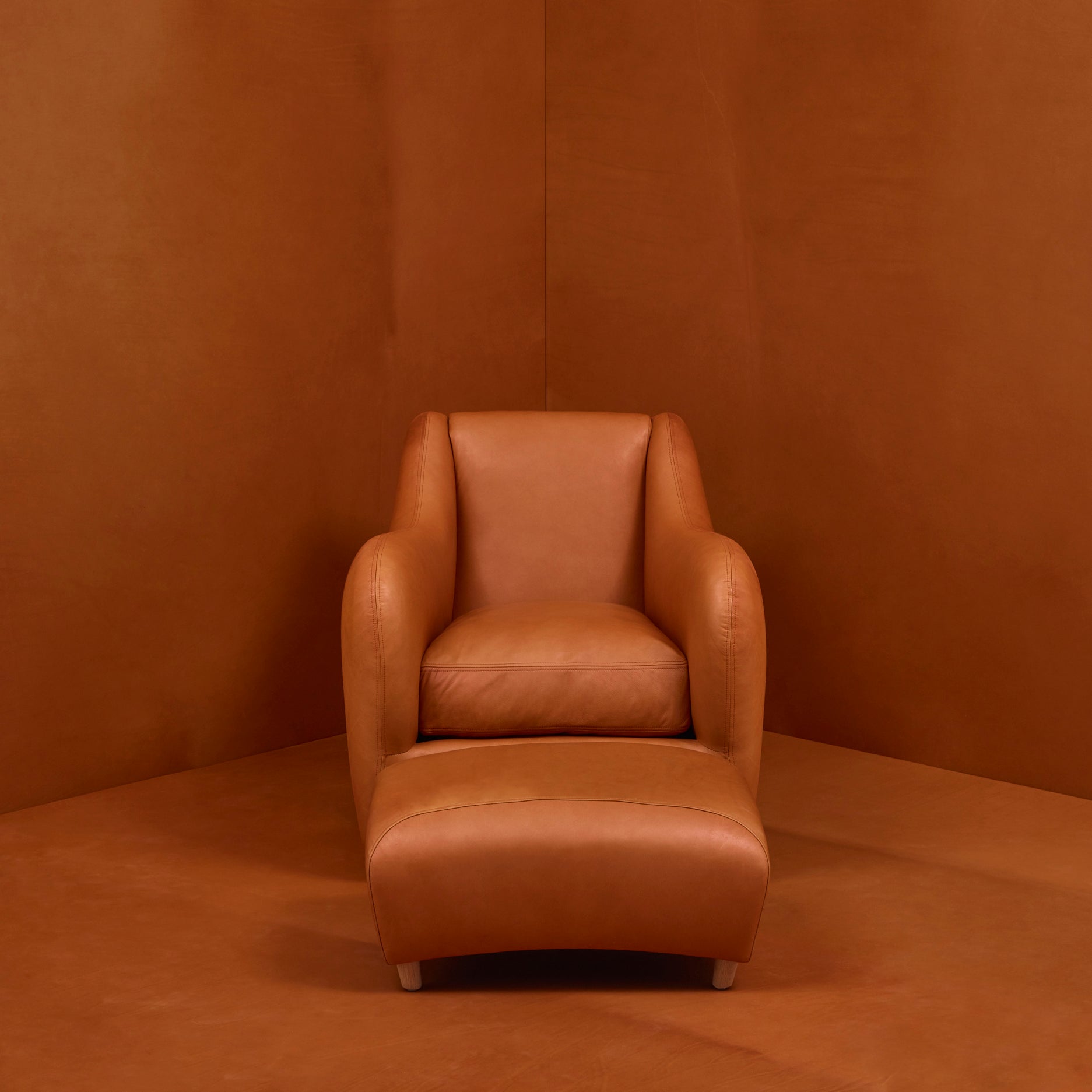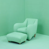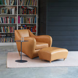 A matching ottoman blissfully extends the comfort level of Matthew Hilton’s signature armchair for London maker SCP. Launched in 1991 and echoing Balzac’s curvaceous contours, the seating’s companion piece is likewise made at the British company’s homeland upholstery factory. With a frame in solid beech and jute webbing and zigzag springs and a range of upholstery choices underscored with 100% natural and sustainable materials, including latex and coconut fiber, needled lambs wool, needled recycled wool, and recycled foam, the enduring ‘90s design is a model of graceful poise.