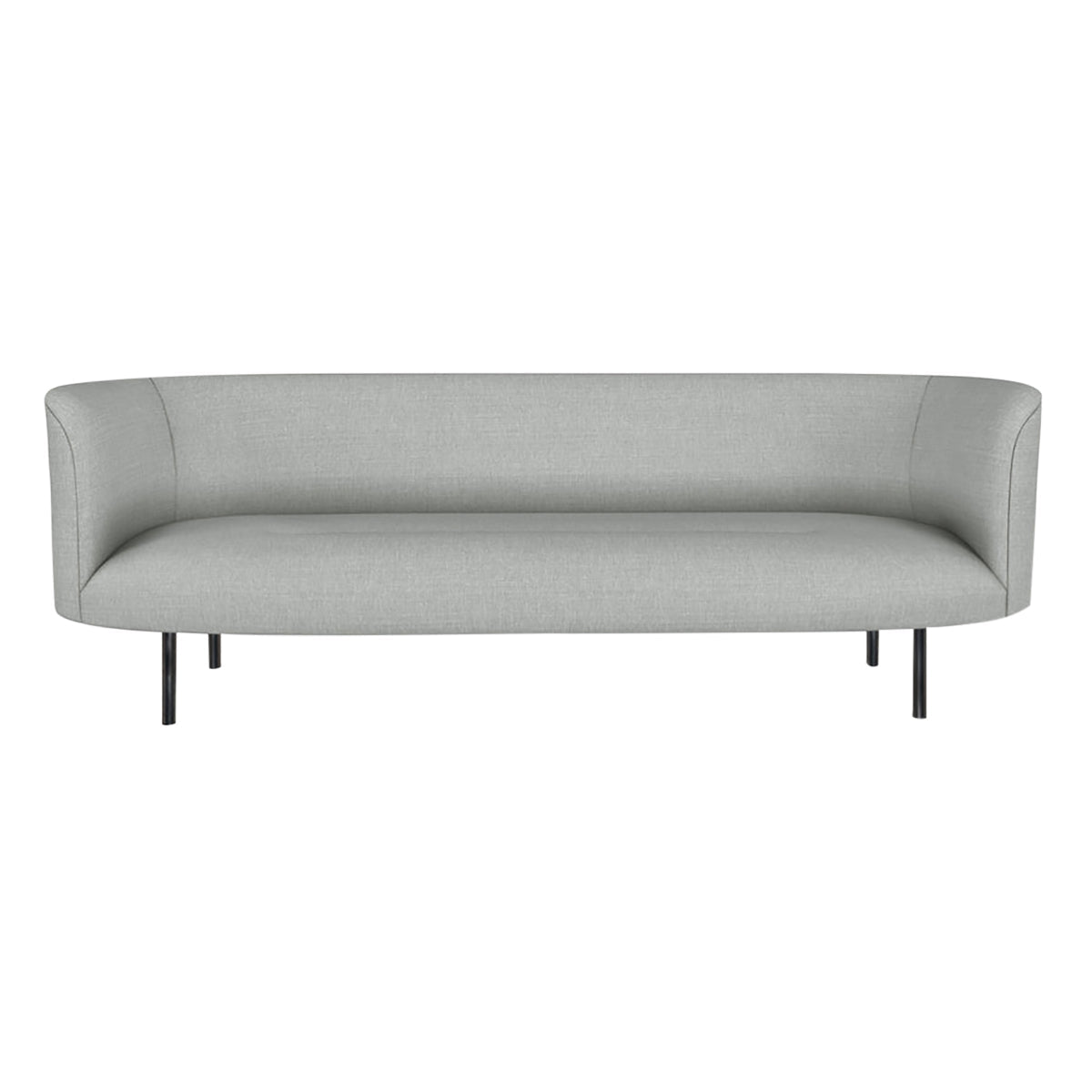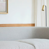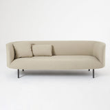 Aloft on slender metal legs, Continuous 3 Seater offers a standard-size option that touches down lightly in a room. Suggested by upholstered furniture of the 1920s, Faudet-Harrison studio's collection for SCP unfurls with a dramatic curve, shaped by a frame made from solid beech and inner construction with webbing, zigzag springs and recycled foam. Deeply comfortable seat cushioning plumped with feather fill is available in a choice of bench, loose or fixed styles. Made in Norfolk, England.