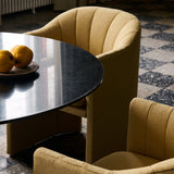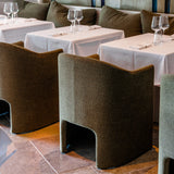 This fully upholstered dining chair is soft yet sturdy, an offshoot of Space Copenhagen’s chill Loafer collection. A lighter, narrower version, it’s rescaled with a higher seat for dining and gently sloping sides to form an armrest. At home in upscale eating places and private homes alike, Loafer offers long-lasting comfort and fine craftsmanship with its solid construction, plush upholstery and precisely detailed stitching.