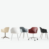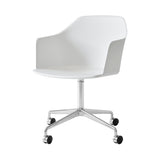 With his innovative molded armchair made from 100% recycled polypropylene, Hee Welling adds a version with a 4-star swivel base and rolling castors. Rely's comfortably contoured seat curves around the body and extends out along the side to provide matchless back support. It's paired with the base in extruded aluminum with a silvery polished finish or a black or bronzed powder coat.