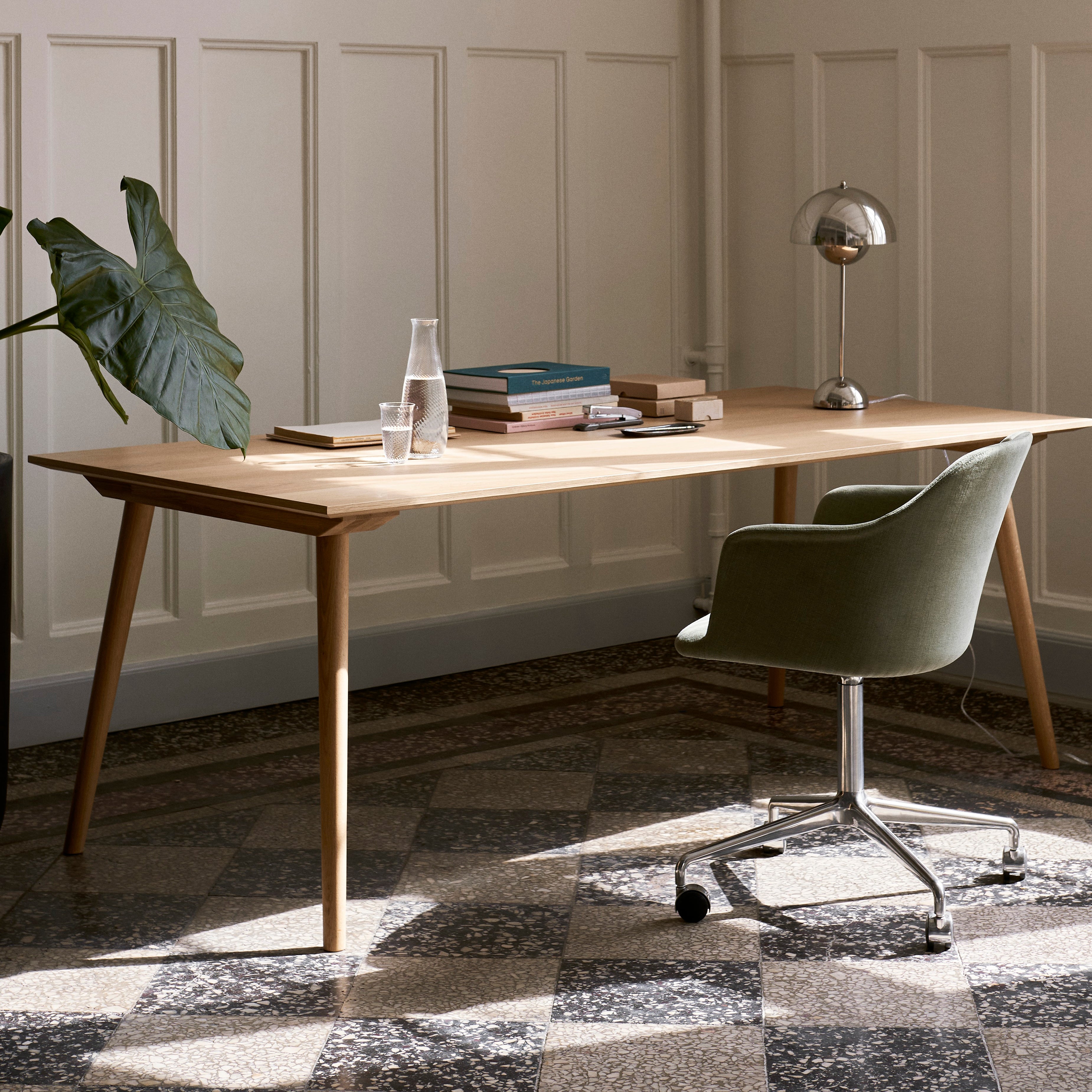 Thoughtful utility meets workaday comfort in &Tradition’s eco-friendly armchair with its generous fully upholstered contours and seat cushion in matching or mixed material. Sustainably crafted in a 100% recycled plastic composite, Rely’s ergonomic shell seat is fixed on a polished or powder-coated aluminum 4-star swivel base on rolling castors.