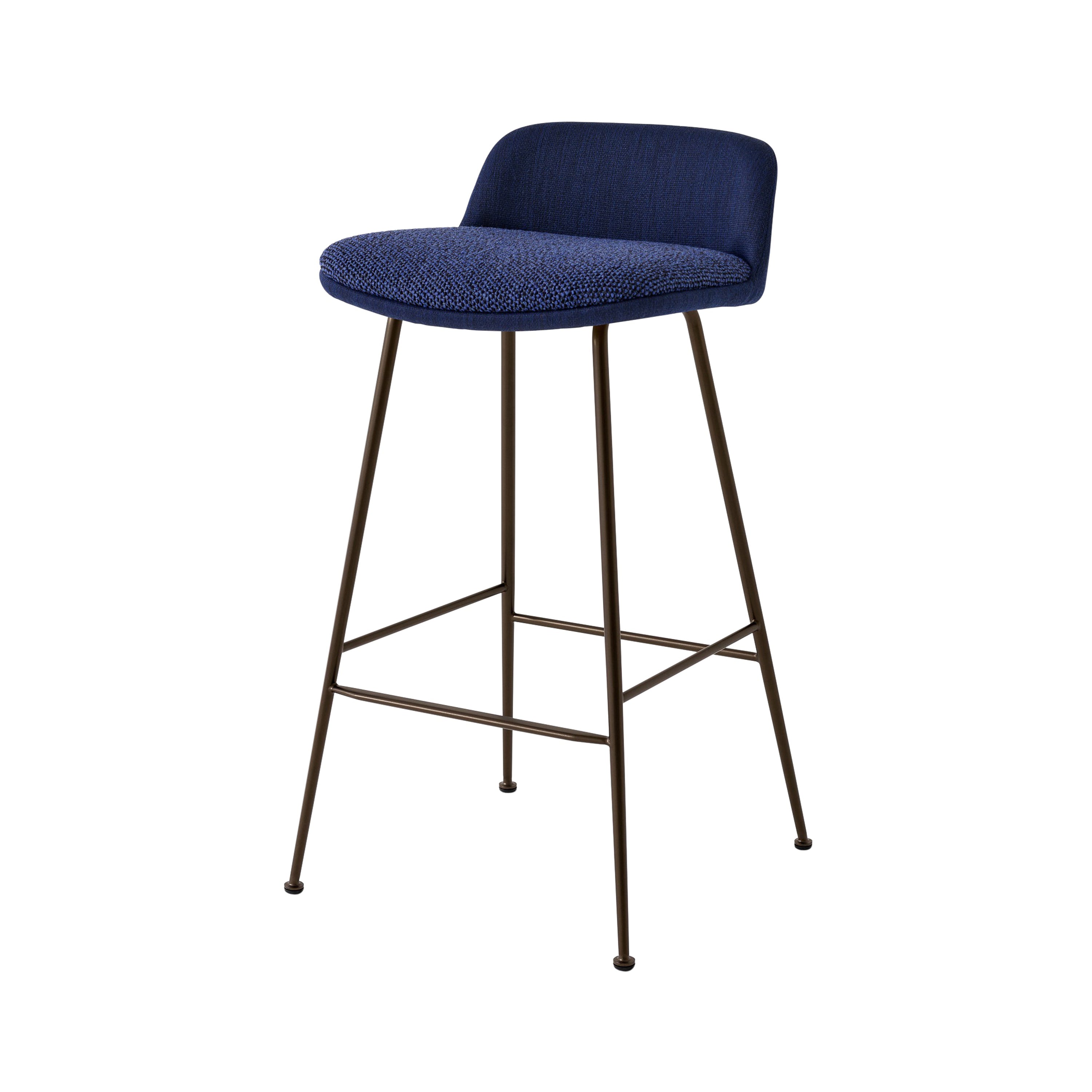 In a completely upholstered version with an added seat cushion, &Tradition expands on its lowback stool model from the Rely family. With a choice of bar or counter height, it features designer Hee Welling’s update of a molded shell seat made from recycled plastic. Equally apropos in a workspace, hospitality venue or the home, it has a compact footprint with its roomy proportions clad in a premium textile or leather and steel tube legs in either black or bronzed finish.