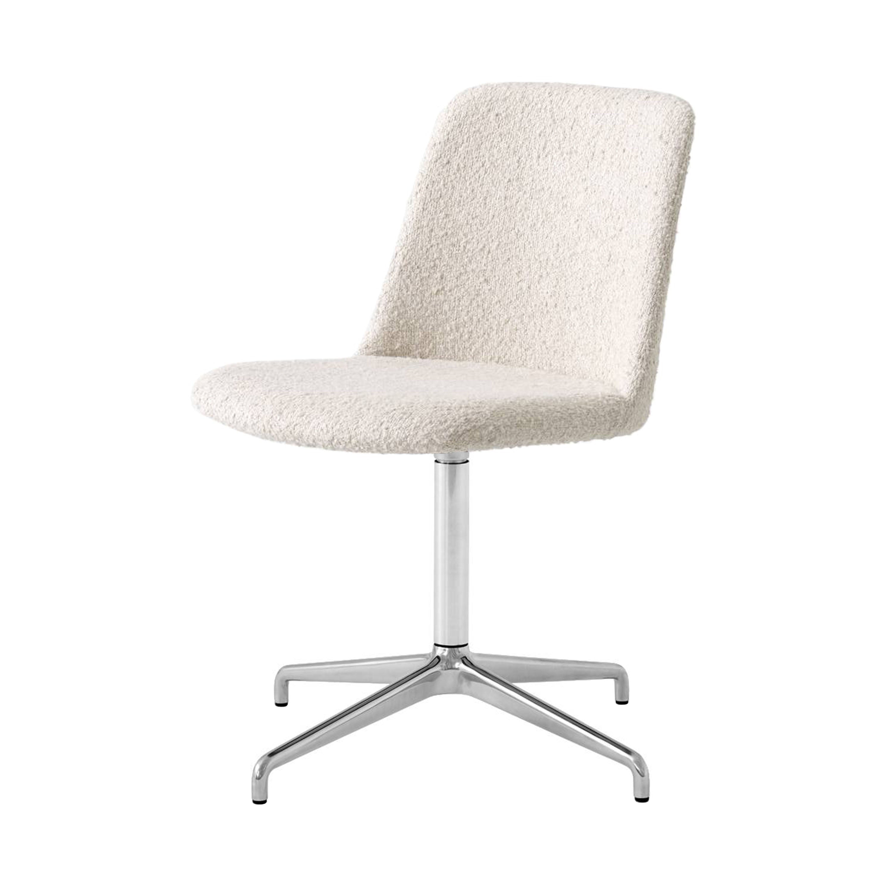 Designer Hee Welling’s Rely, an updated shell chair made from 100 percent recycled plastic, adds a completely upholstered version on a swivel base with the convenient return feature. His version of the Nordic classic for Copenhagen’s &Tradition comes in a choice of select fabrics or leather over a layer of resilient HR foam to complement its ergonomically comfortable contours. The chair base is made from extruded aluminum and is available in a chrome, bronzed or powder-coated black option.