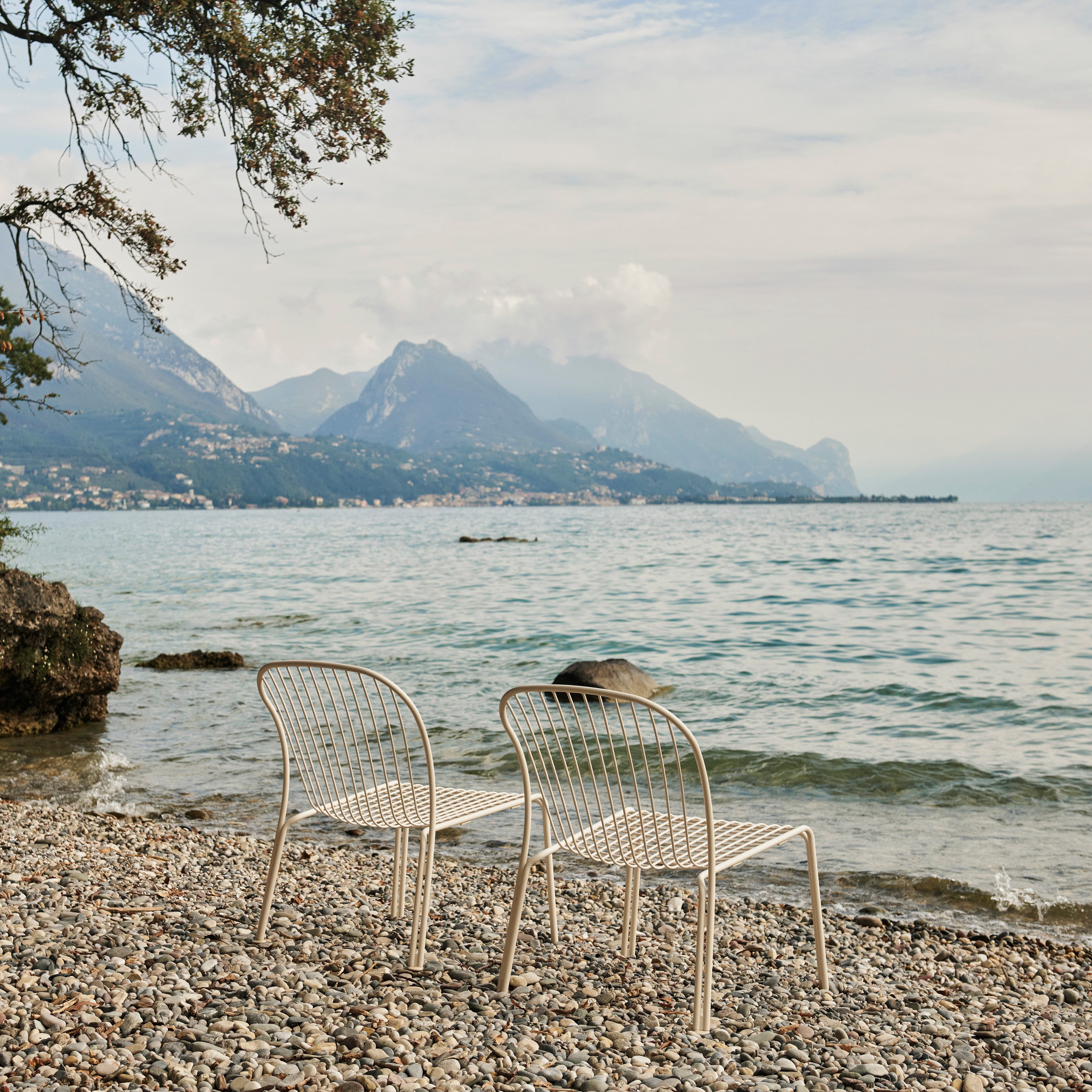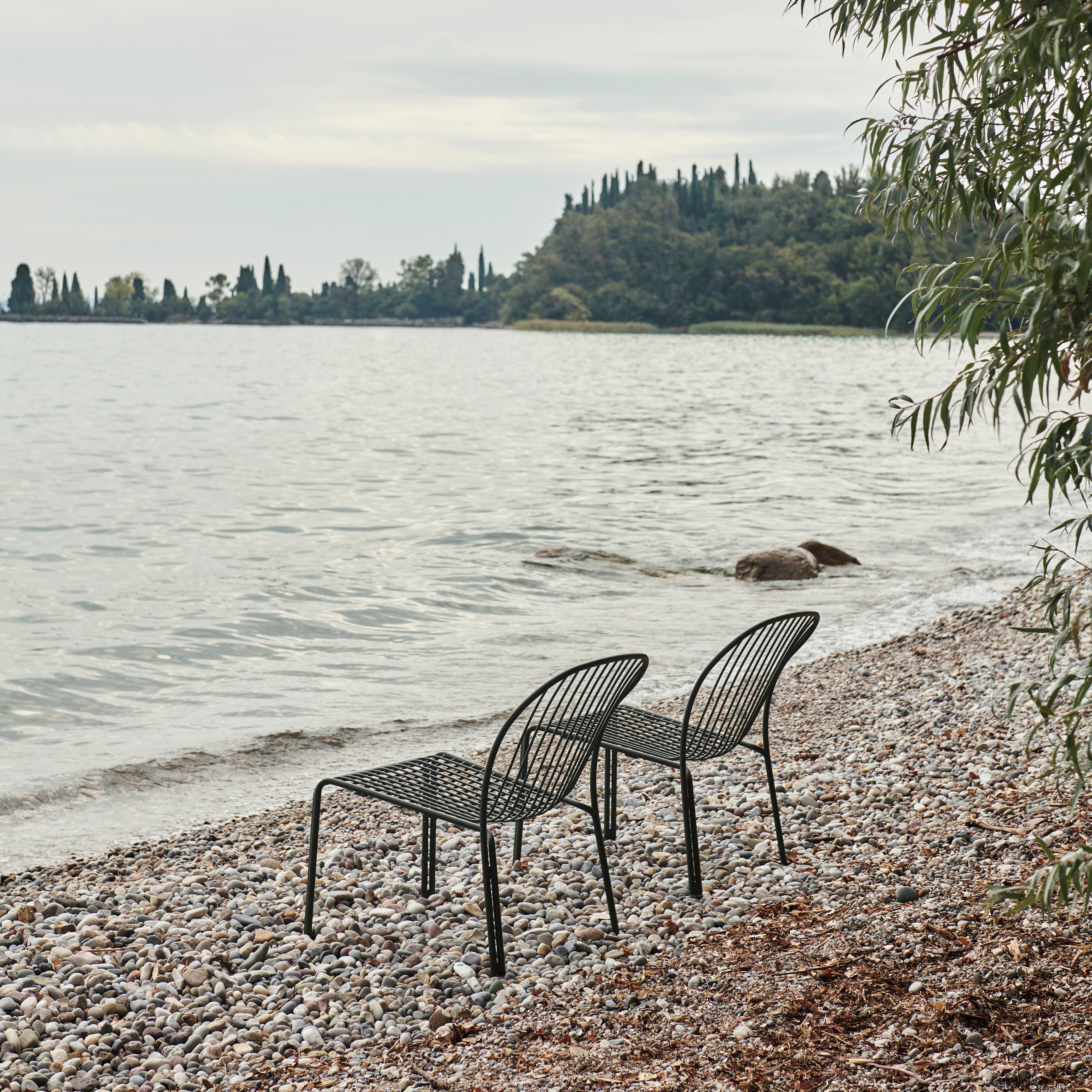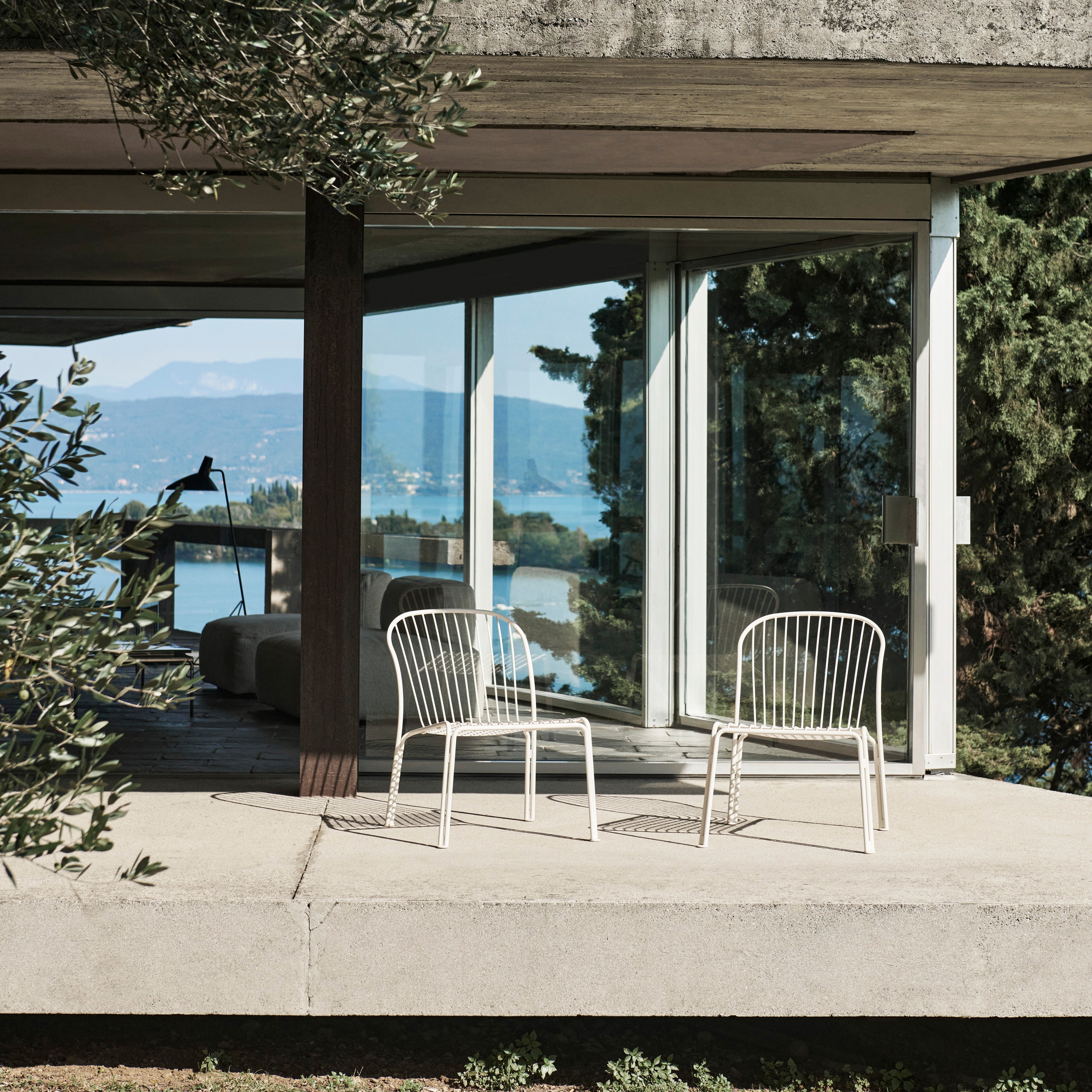 The Thorvald SC100 Lounge Chair with Cushion by &Tradition is designed for luxurious outdoor relaxation. Featuring a powder-coated steel frame, this chair is built for durability and weather resistance. Its generous dimensions create a low, comfortable seating profile ideal for patios, terraces, or garden spaces. Available finishes, such as warm black, ivory, and bronze green, make the chair adaptable to different outdoor settings and design preferences. Additionally, the stackable design provides flexibility for storage when needed.