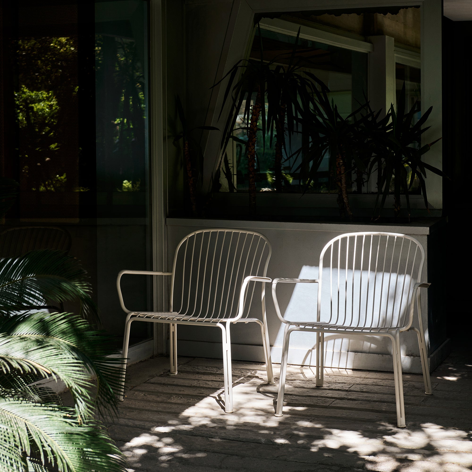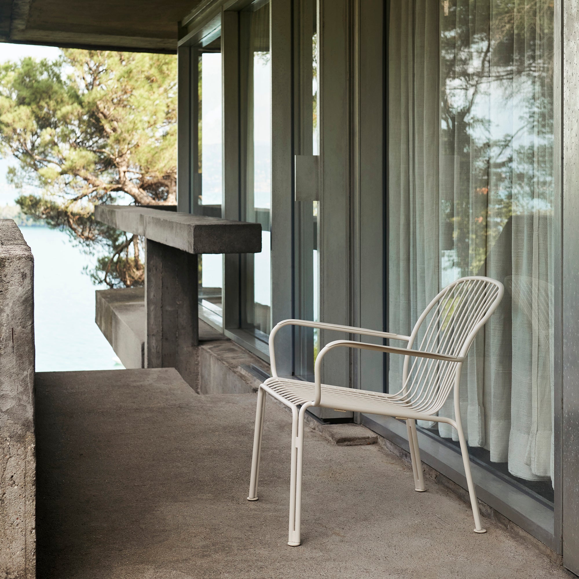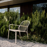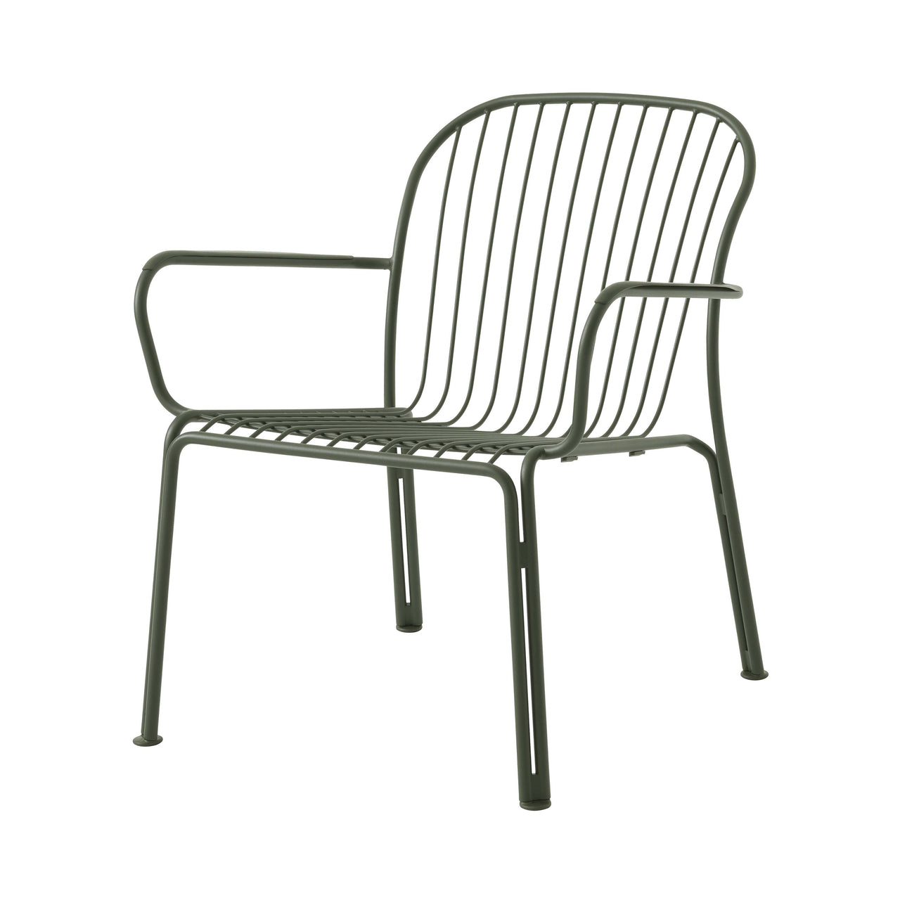 The Thorvald SC101 Lounge Armchair is designed for luxurious outdoor relaxation. Featuring a powder-coated steel frame, this chair is built for durability and weather resistance. Its generous dimensions create a low, comfortable seating profile ideal for patios, terraces, or garden spaces. Available finishes, such as warm black, ivory, and bronze green, make the chair adaptable to different outdoor settings and design preferences. Additionally, the stackable design provides flexibility for storage when needed.