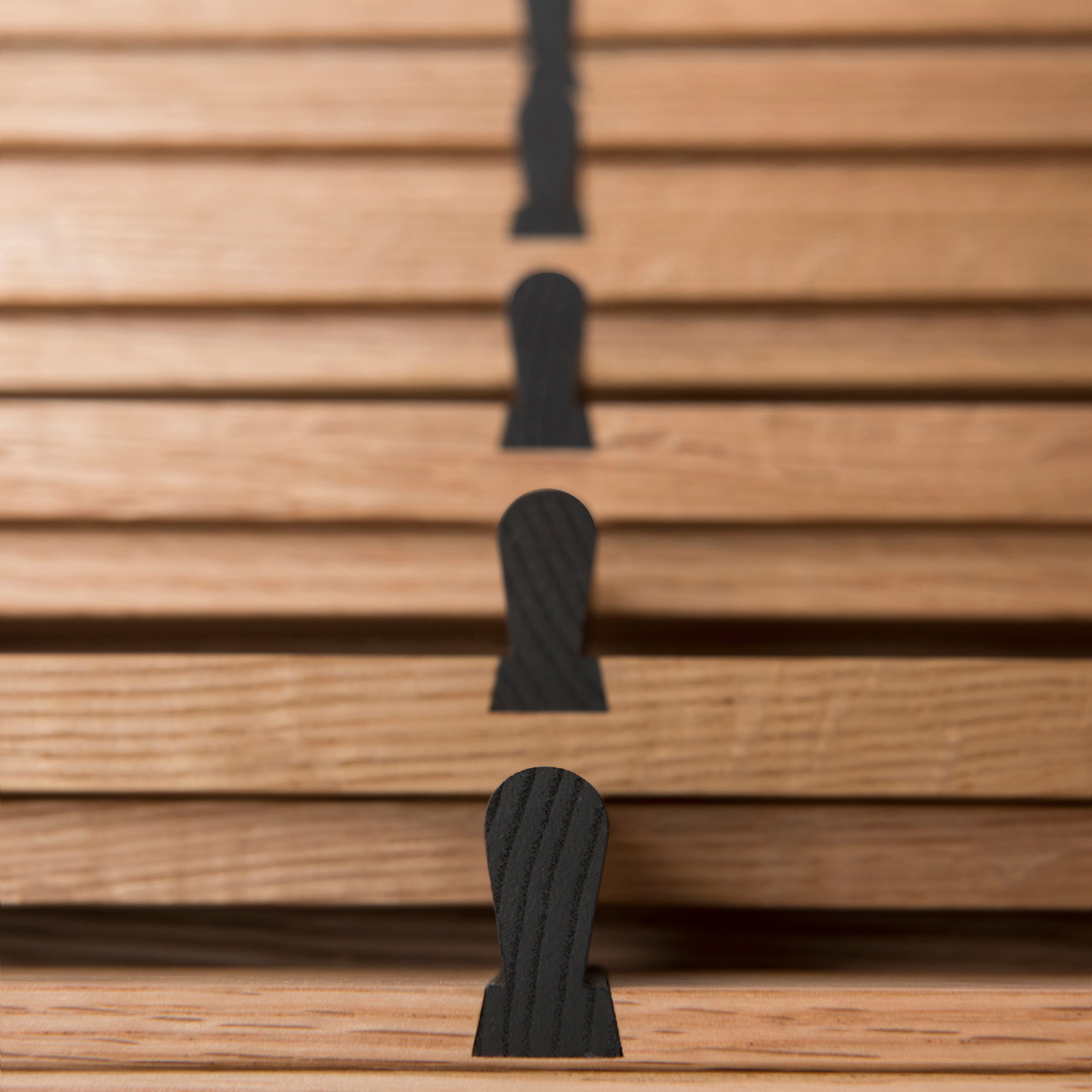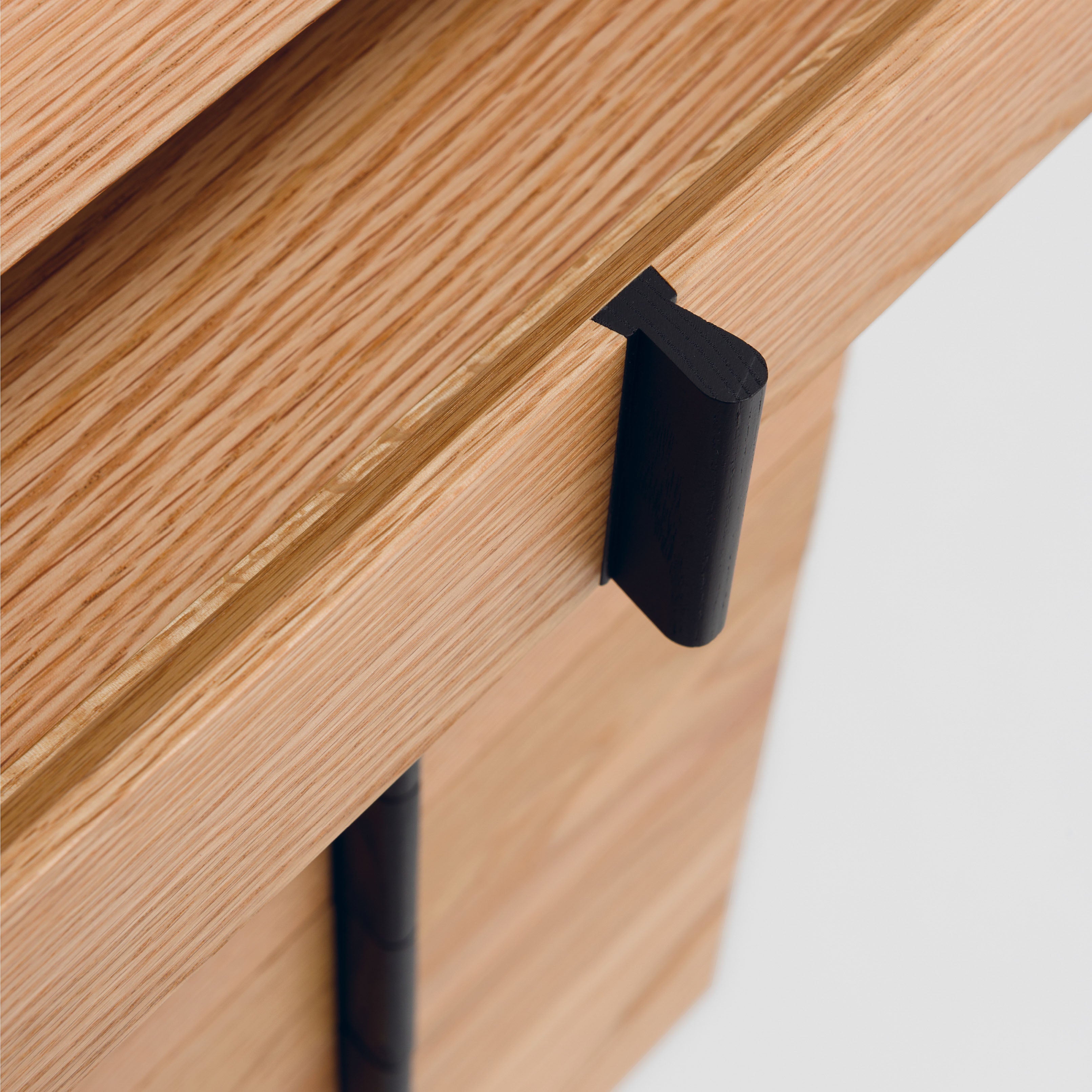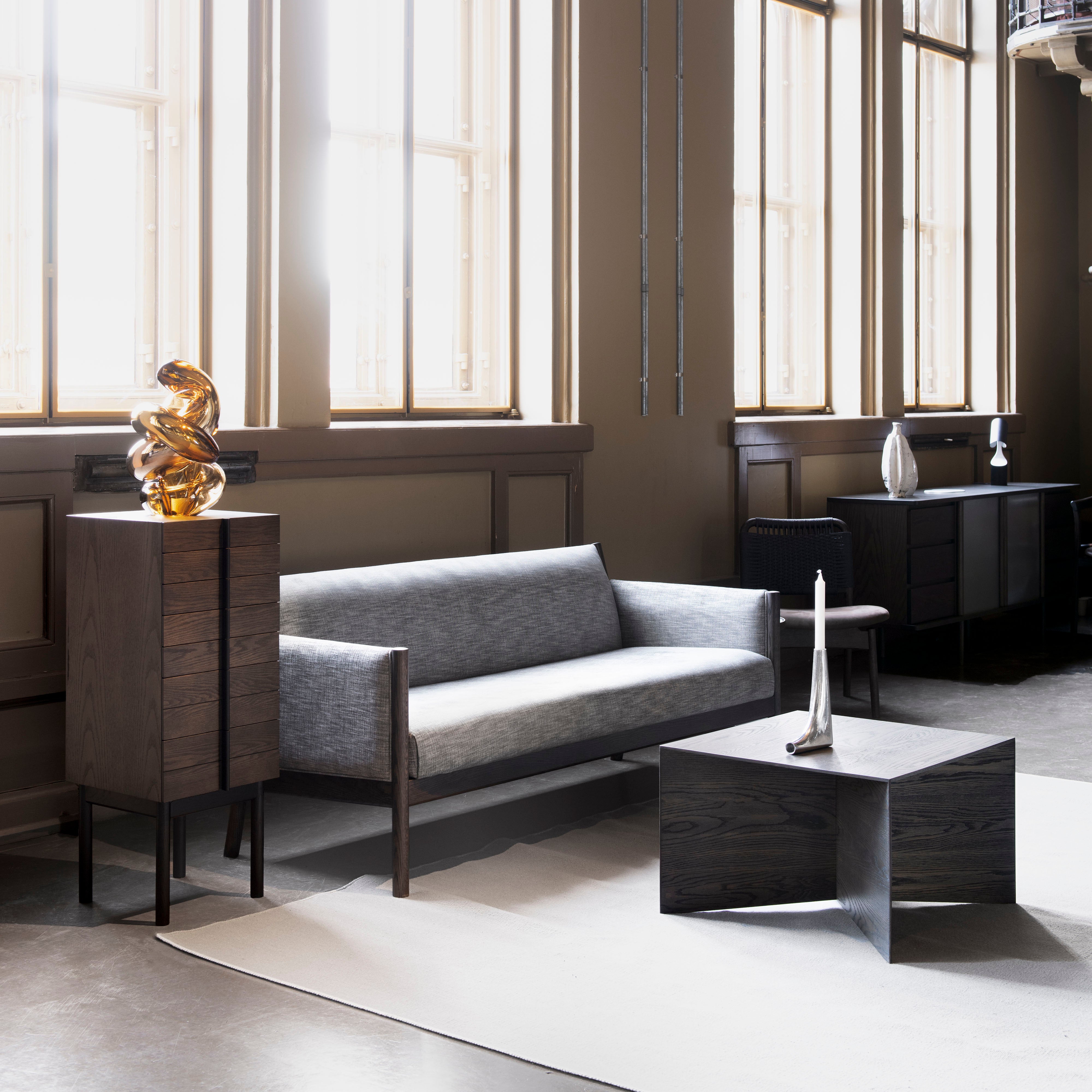Designer Gabriel Tan’s tall chest of drawers is defined by its centered vertical drawer handles—beautifully attached via a dovetail joint—that line up in a single vertical line when they are shut. Closed is elevated on a minimalist frame base and features smaller drawers that are perfect for storing jewellery, watches or other precious belongings as well as drawers at the bottom for larger items.