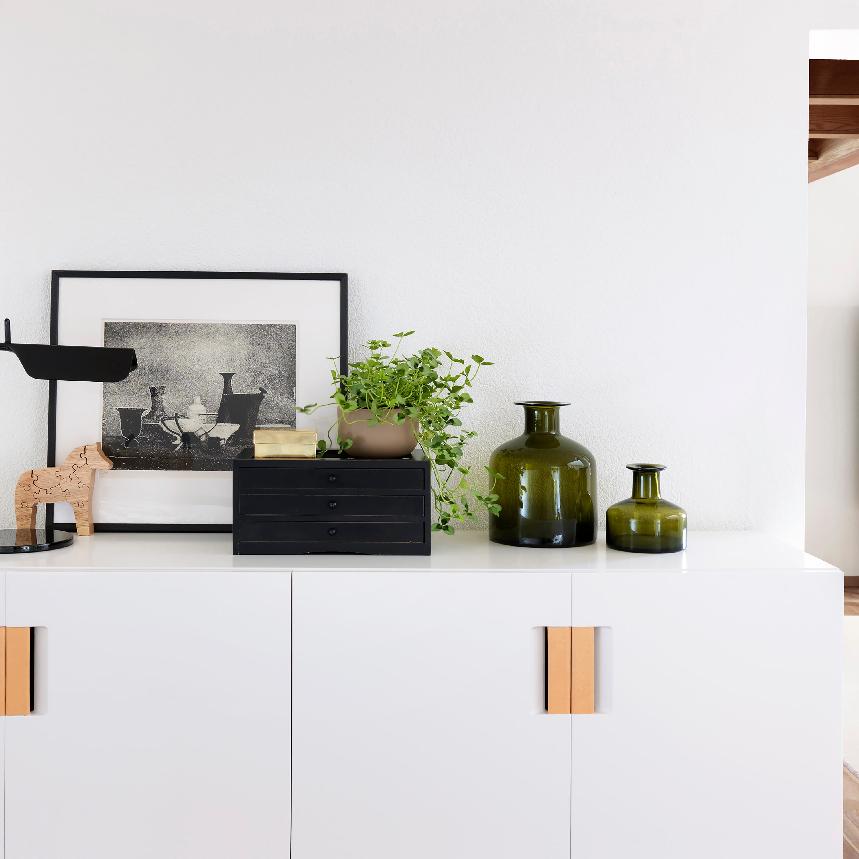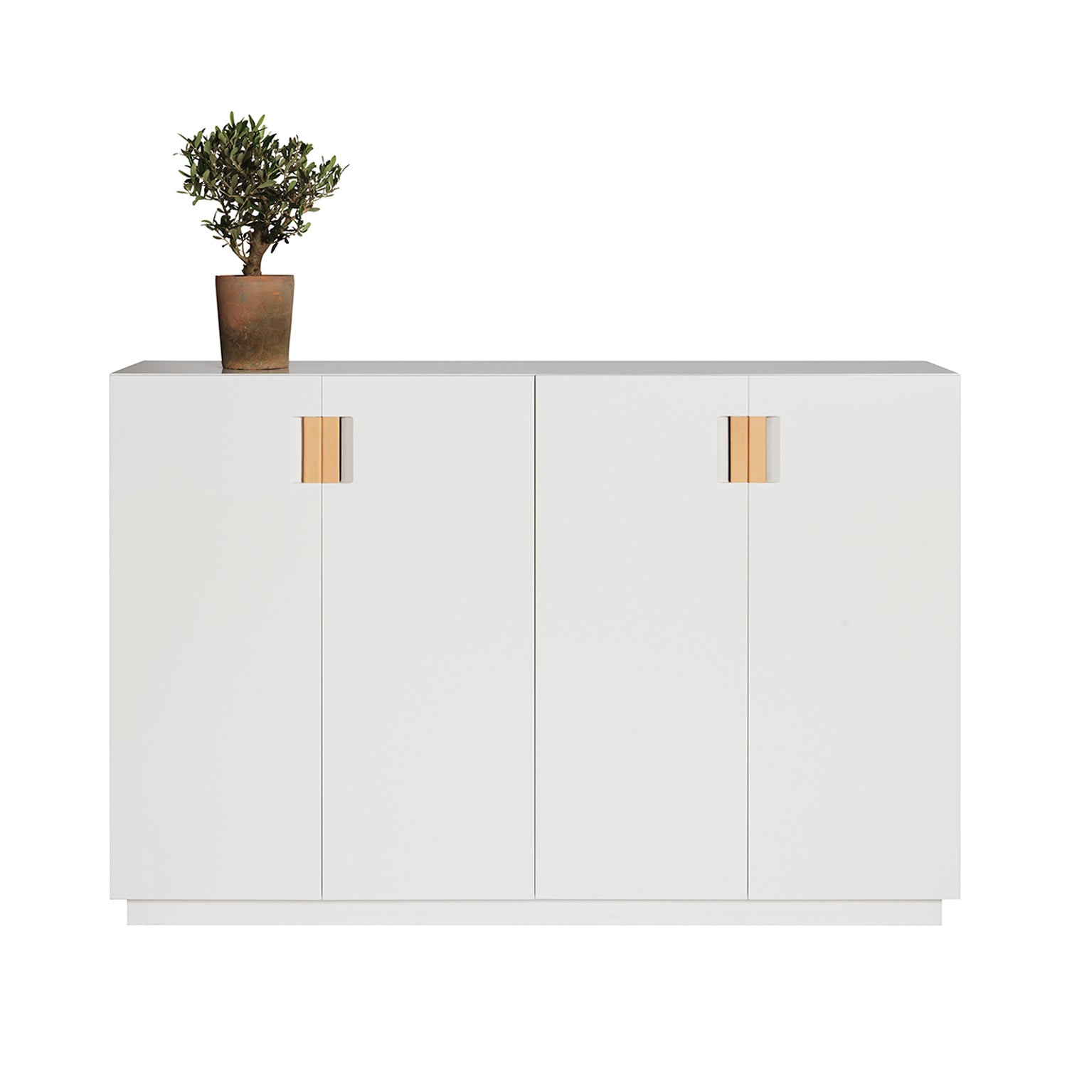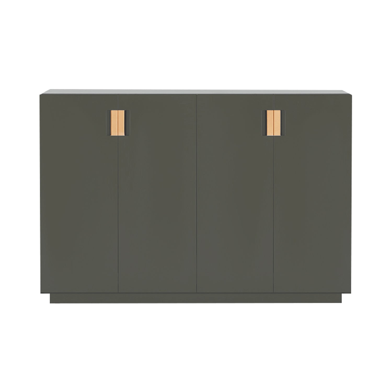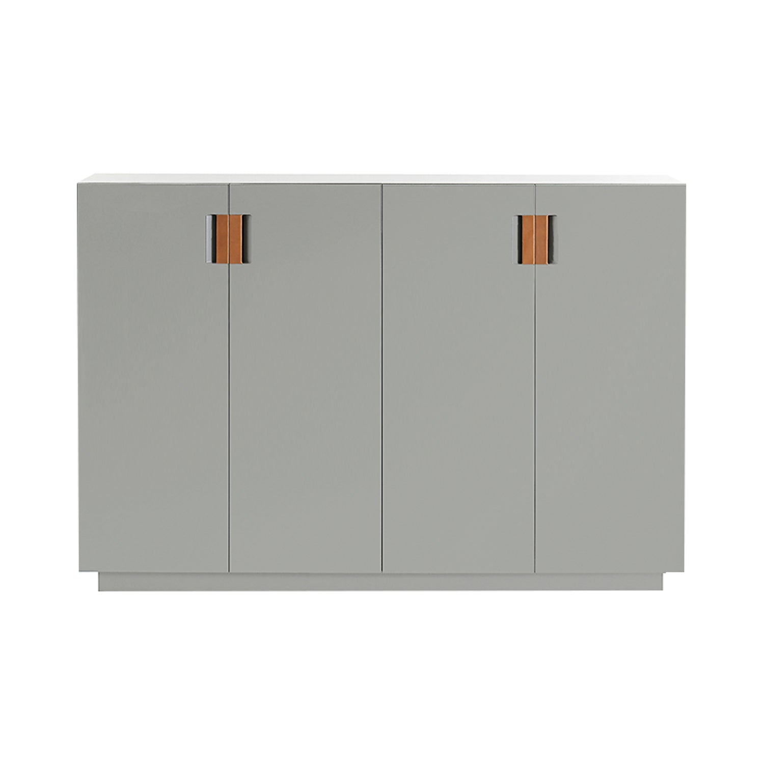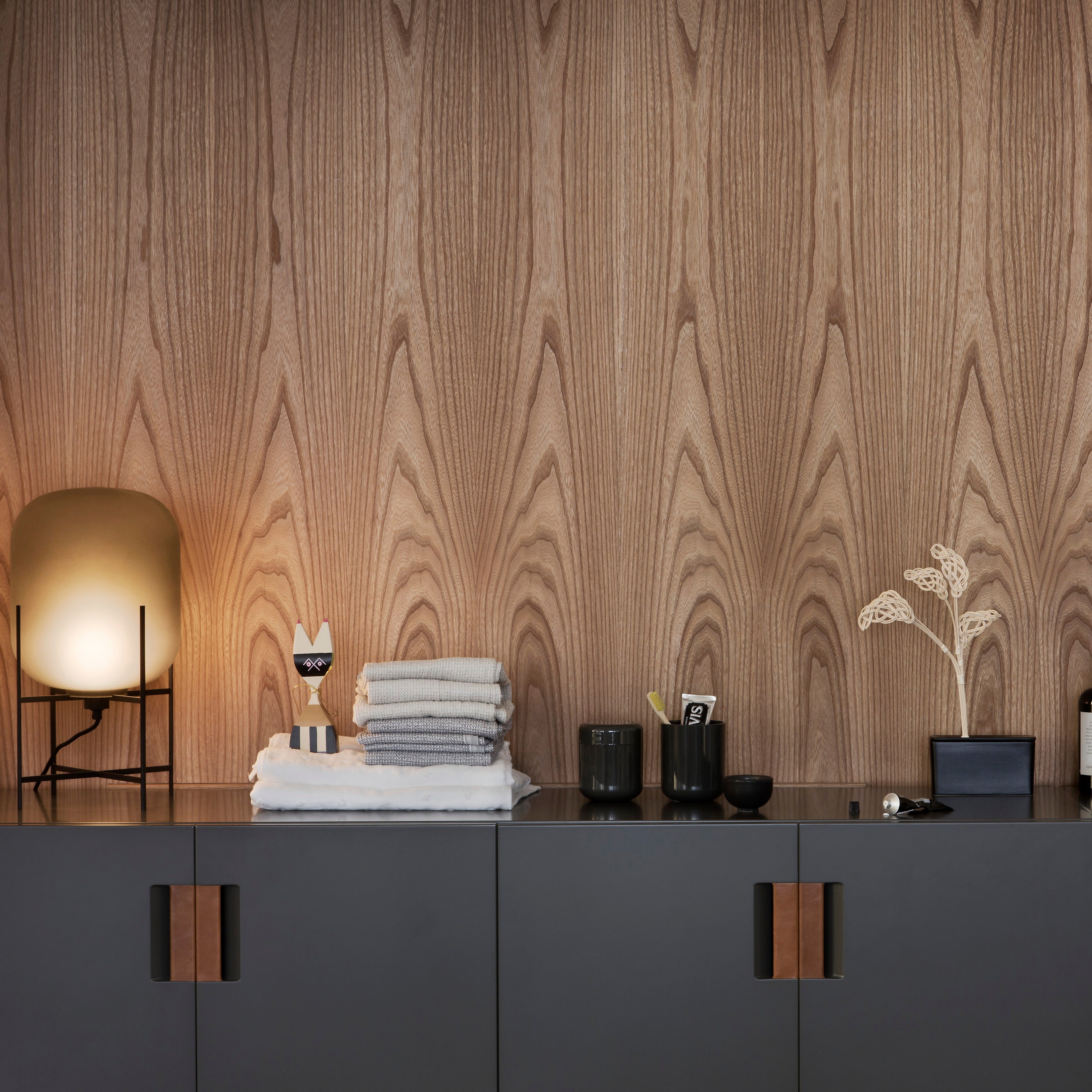 Present a smooth front to the world despite what might be hiding within this roomy storage cabinet with double folding doors. From Asplund’s Frame collection by Swedish designers Anya Sebton and Eva Lilja Löwenhielm, the unit 160 High opens from the center with to reveal 2 interior compartments with 4 lacquered shelves. The striking monochrome concept is rendered in lacquered MDF in a choice of Nordic tones with genuine leather pull handles providing a visual contrast.