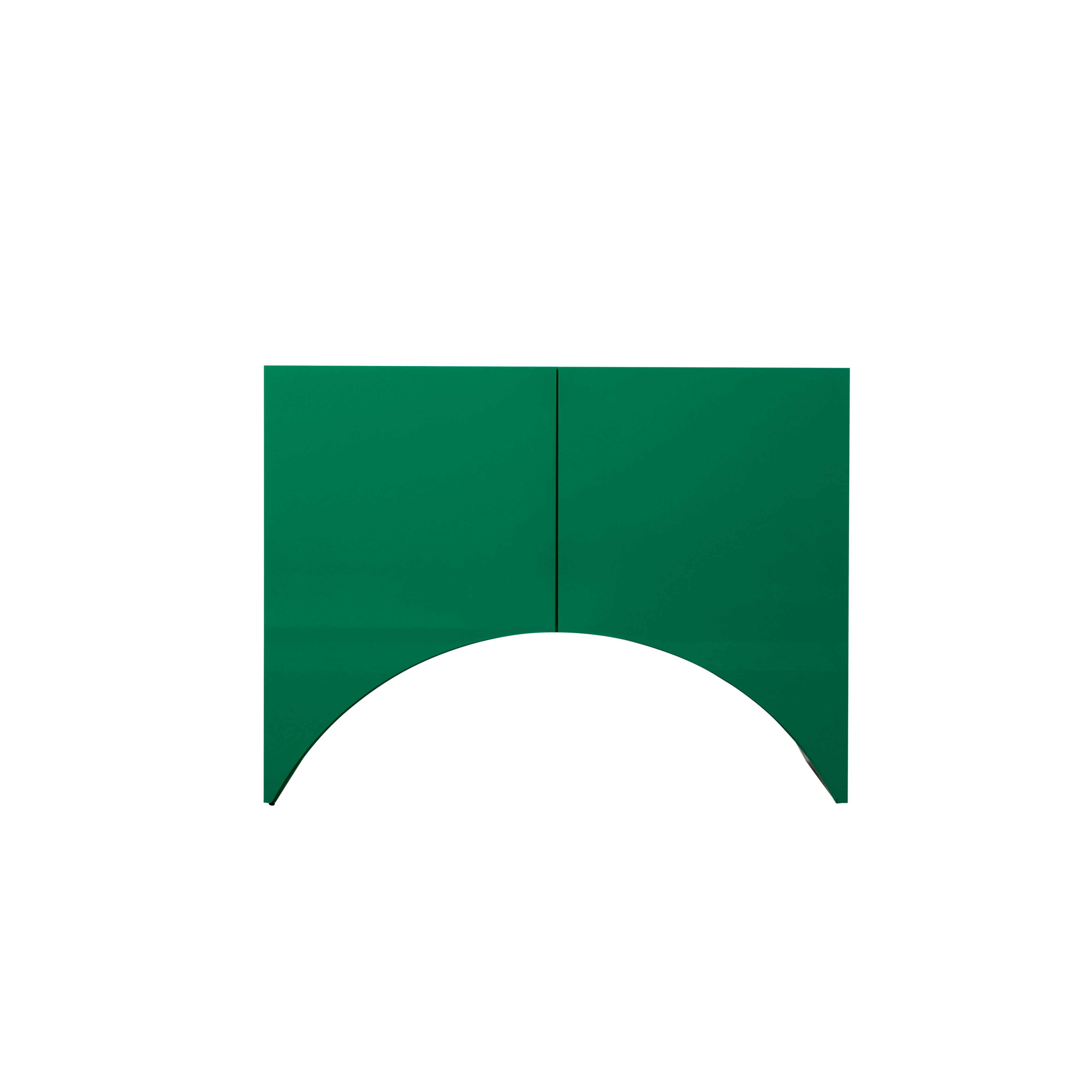 Designed by Muller Van Severen for BD Barcelona, the Bridges Cabinet transforms storage into sculpture with arched cutout bases and bold lacquered finishes in Green, Red, Blue, or Aubergine. Available in three sizes and now available with matching glass tops, it offers architectural presence whether used alone or grouped.