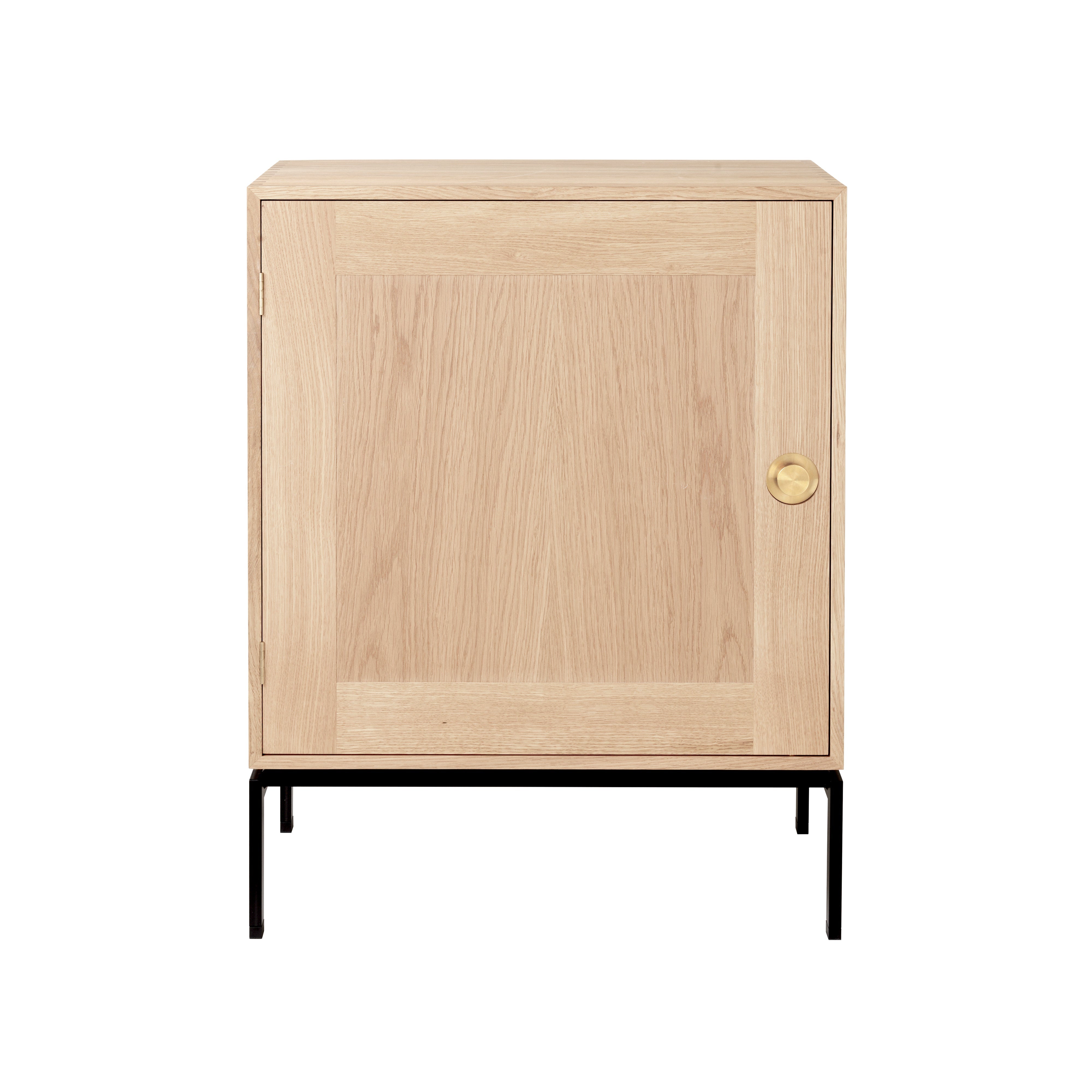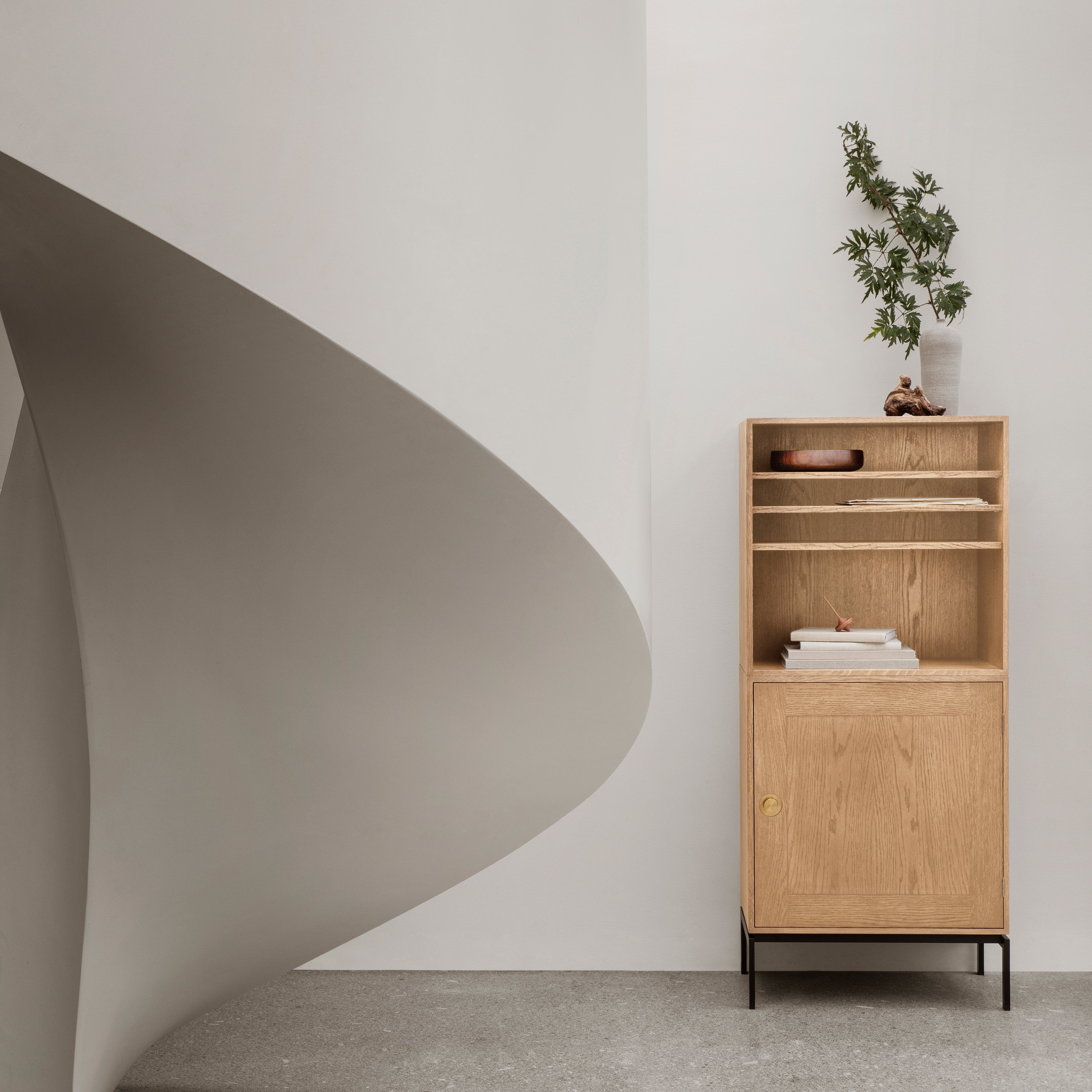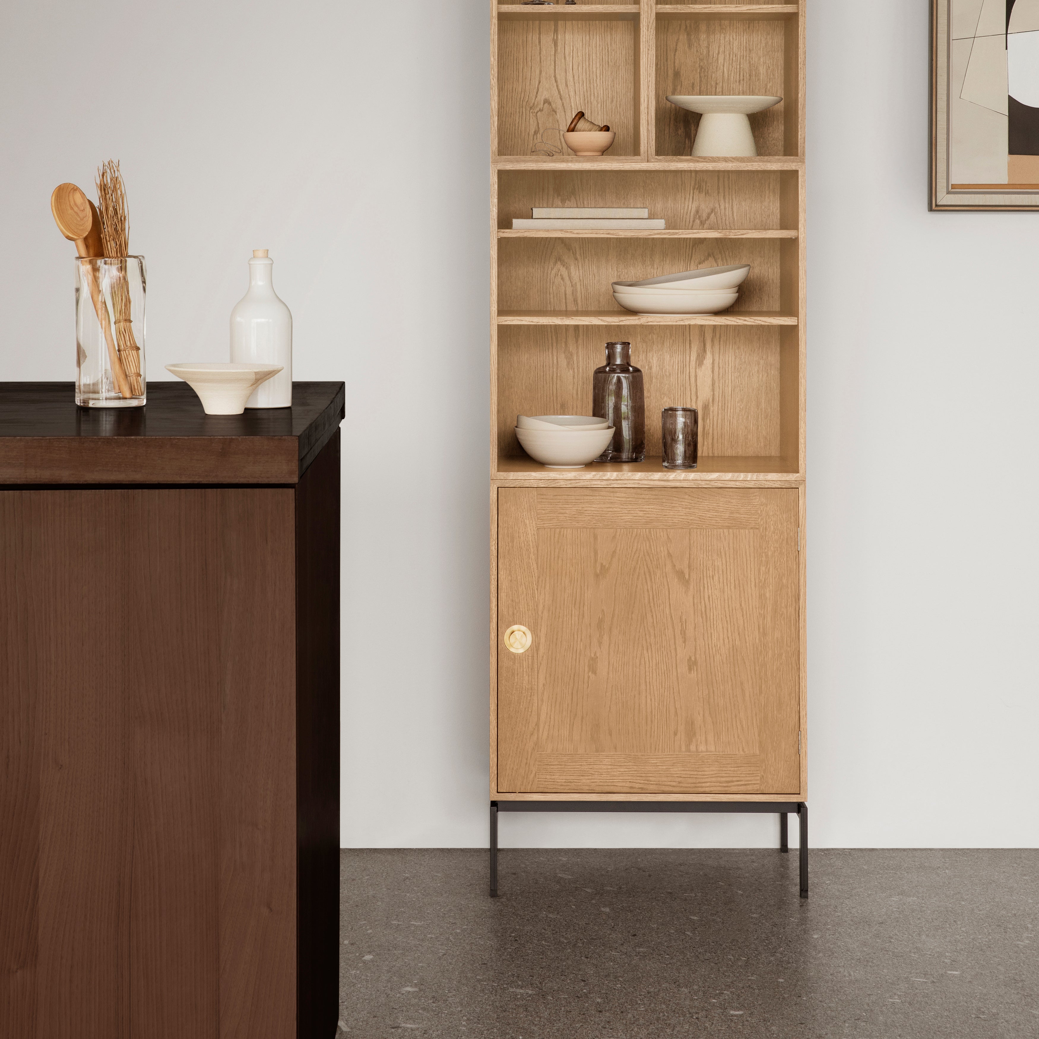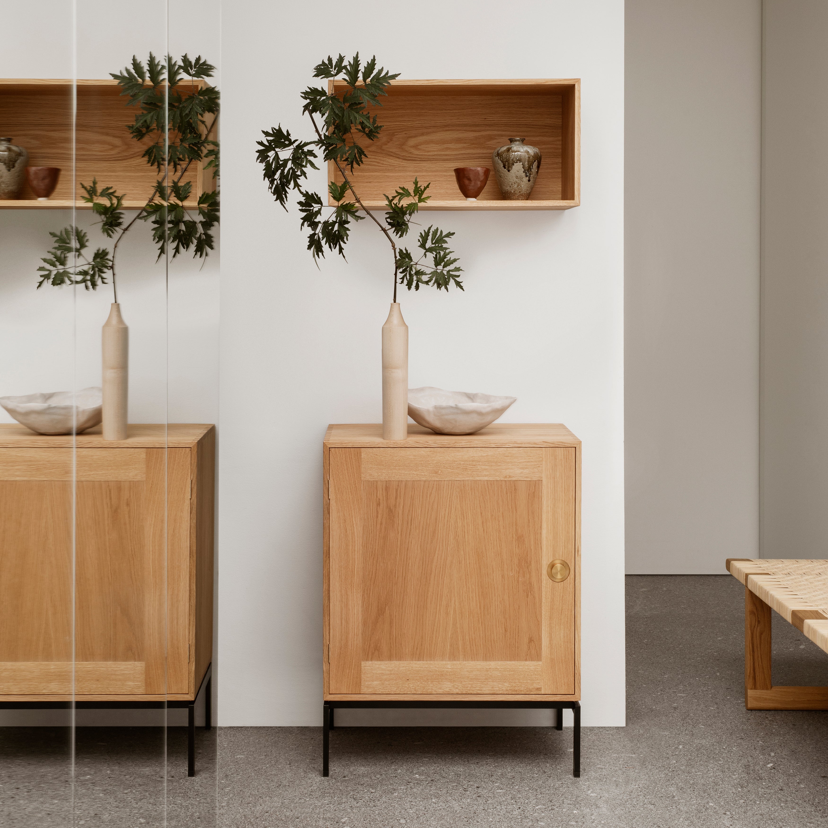 Designers Preben Fabricius and Jørgen Kastholm devised their FK63 storage with a variety of flexible-use modules including this foundational standing cabinet. The deeply proportioned piece with a single door is a functional minimalist design focused on handcrafted details and natural materials. Beautifully crafted by Carl Hansen & Søn in FSC-certified solid and veneer oak with black powder-coated steel legs, it comes in a choice of oiled finishes to accentuate the texture and grain of the wood.