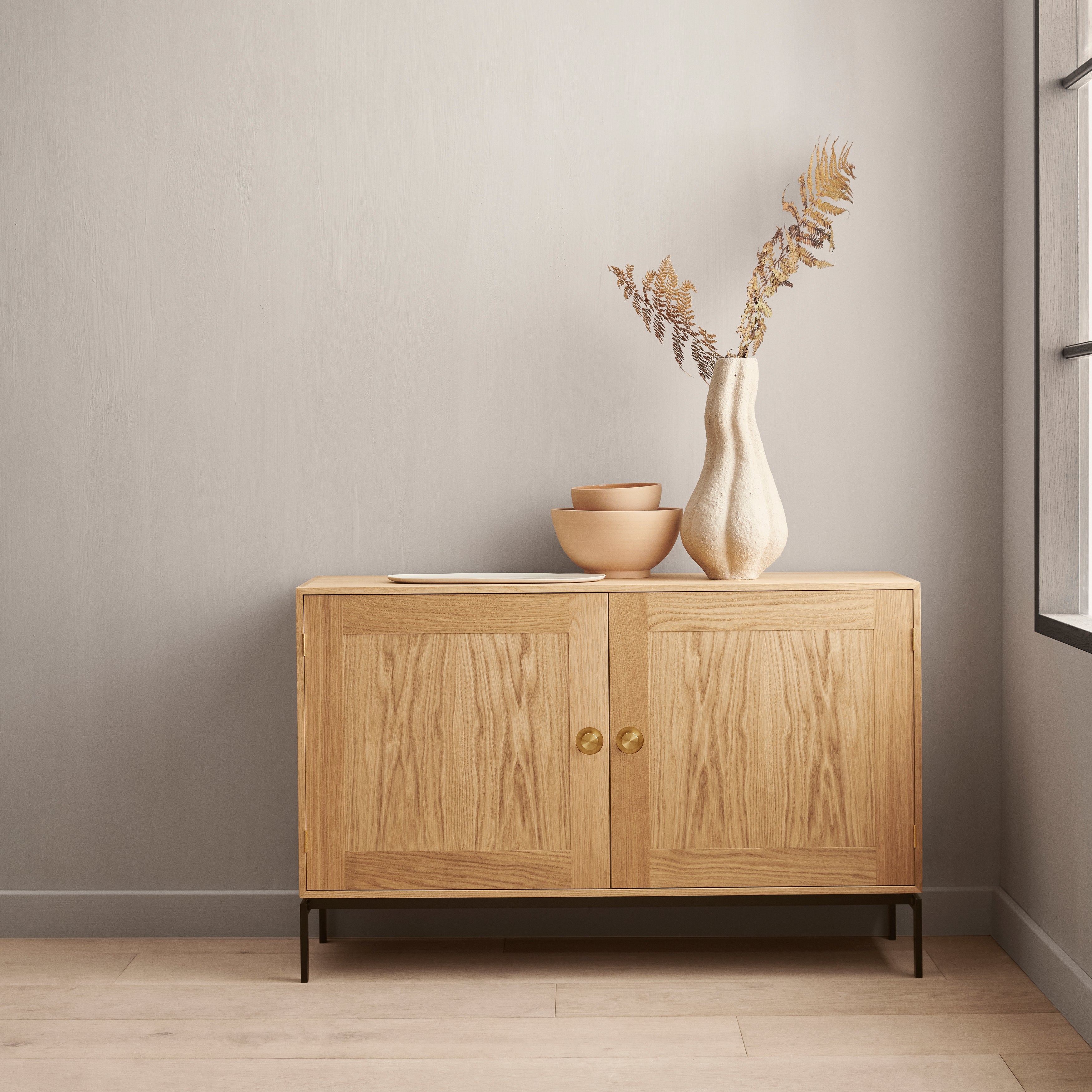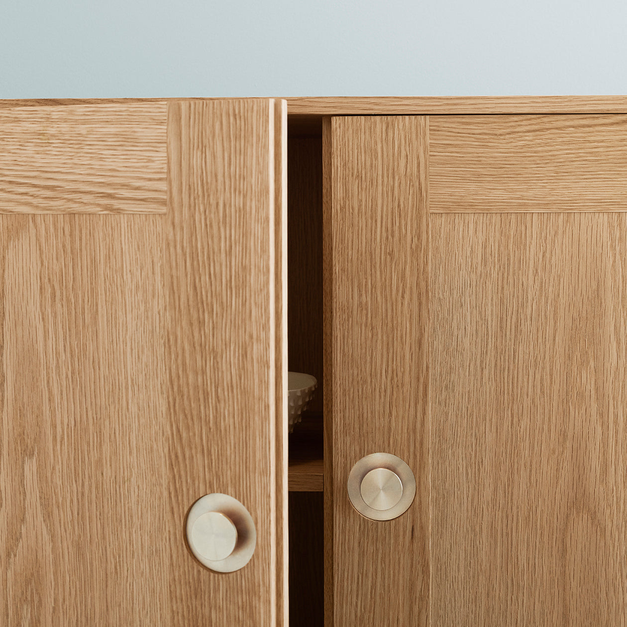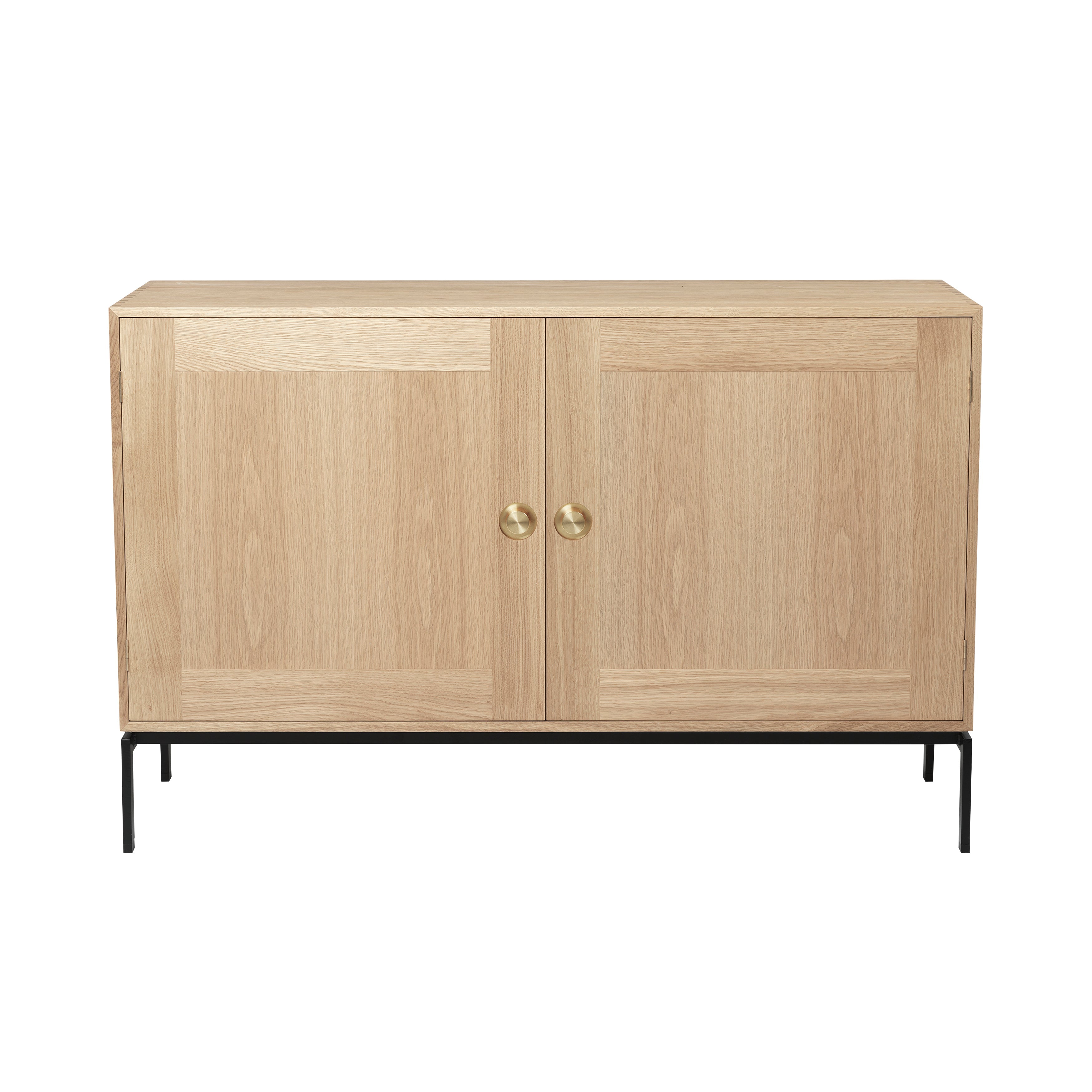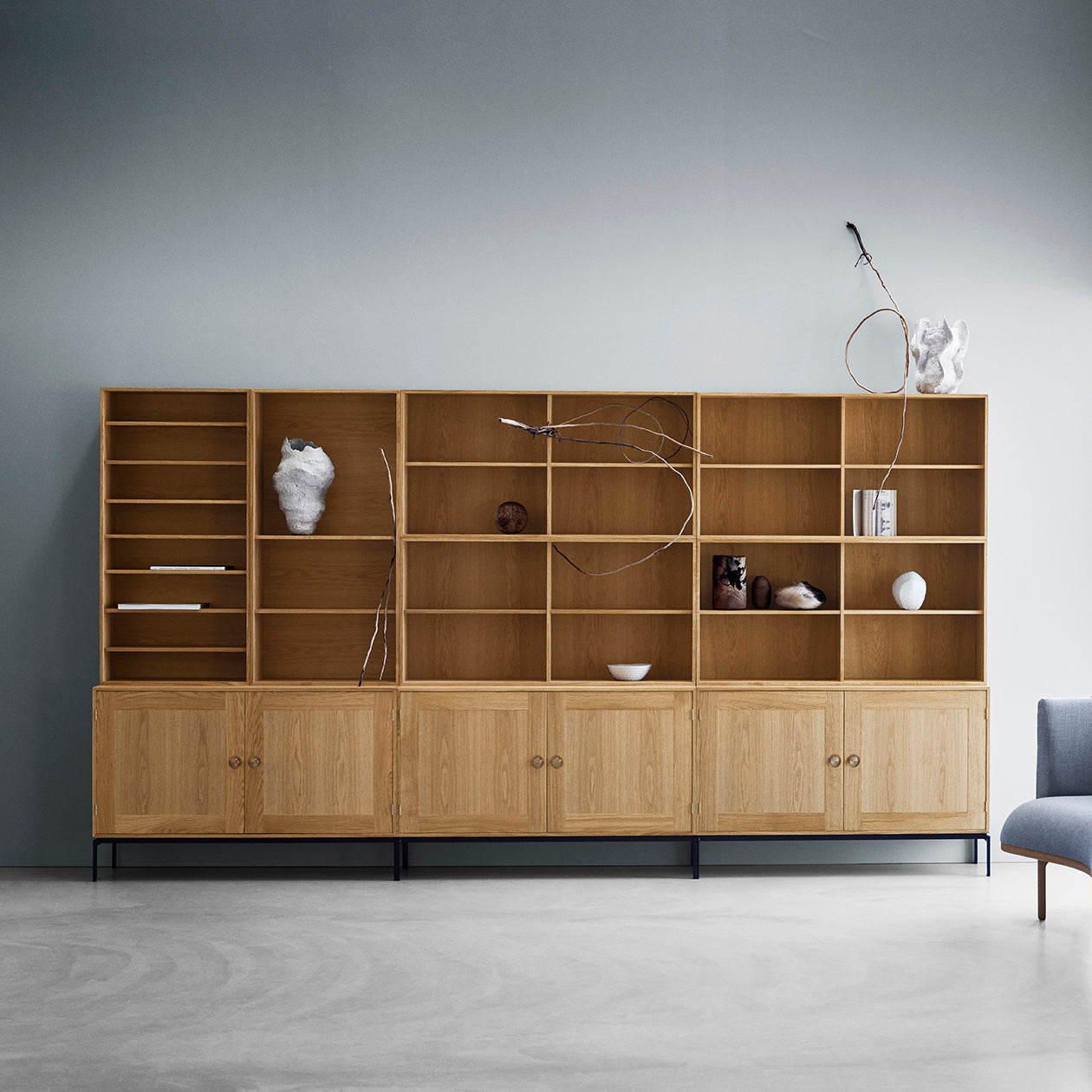 The FK63 storage series by Preben Fabricius and Jørgen Kastholm adds a double-wide cabinet with doors, a key piece on its own or a foundation for multiple-unit configurations, gorgeously realized by Carl Hansen & Søn. The deeply proportioned confines offer plenty of storage space in a minimalist guise, handcrafted in FSC-certified solid and veneer oak with black powder-coated steel legs, offered in a range of oiled finishes to accentuate the woodgrain and texture.