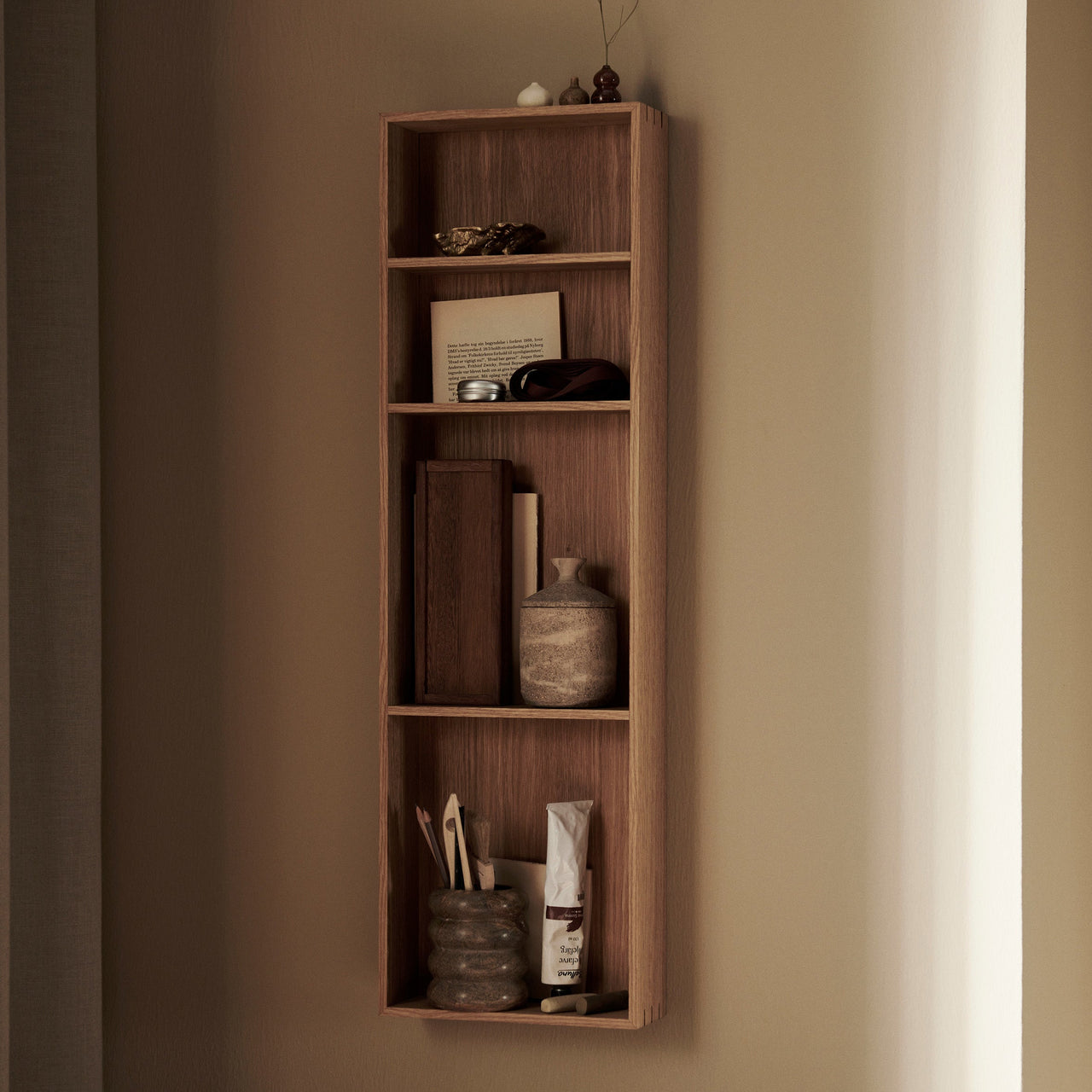 For a few of your favorite things, Bon Shelf is ideal for creating a display within its finely crafted wood proportions with slim lines and elegantly visible, detailed joints at the corners. Ferm Living's unit can be mounted either vertically or horizontally—let it hold mugs or bowls in the kitchen, skincare essentials and scented candles in the bathroom or mount the oiled oak-veneer shelf almost anywhere in the home needing an appealing storage solution.