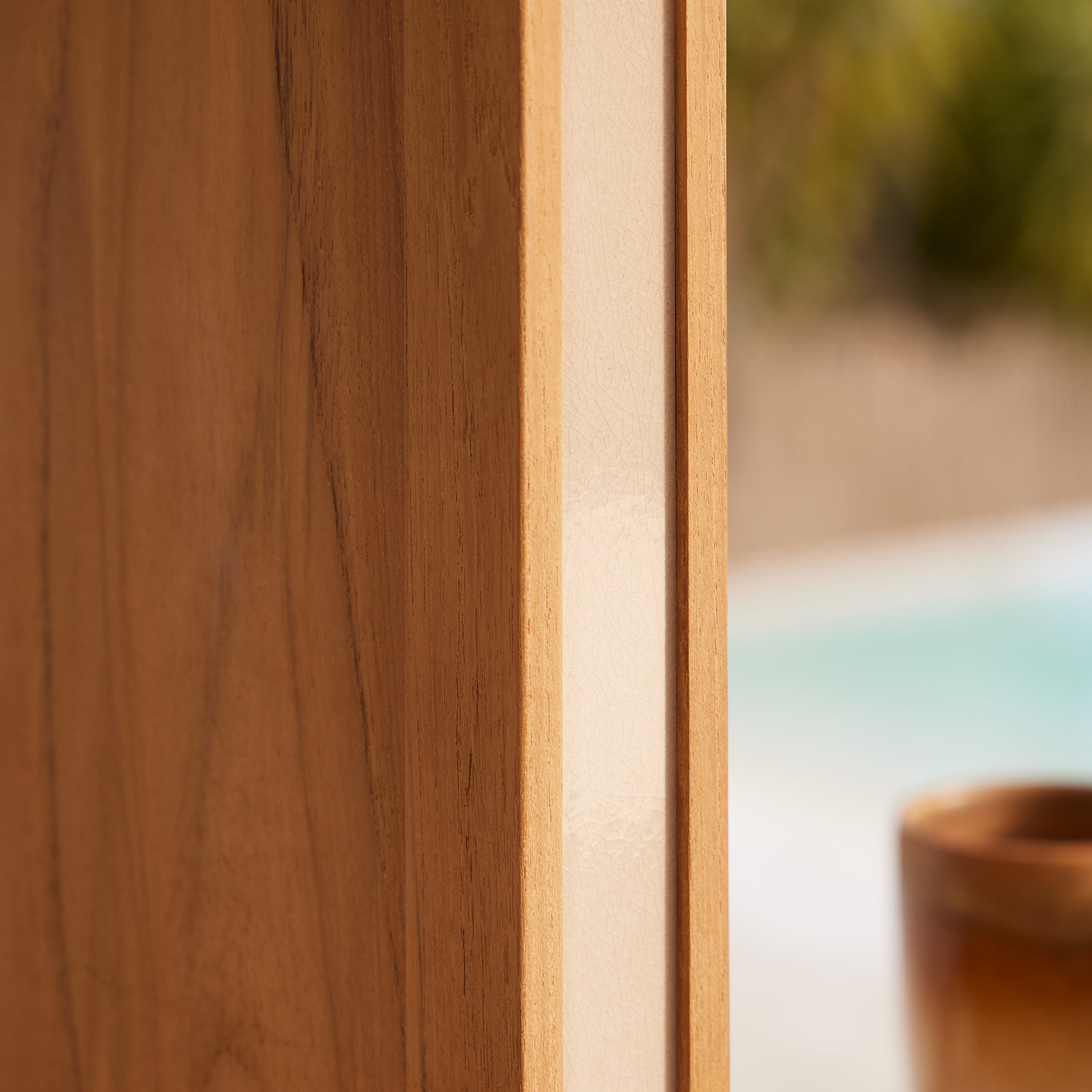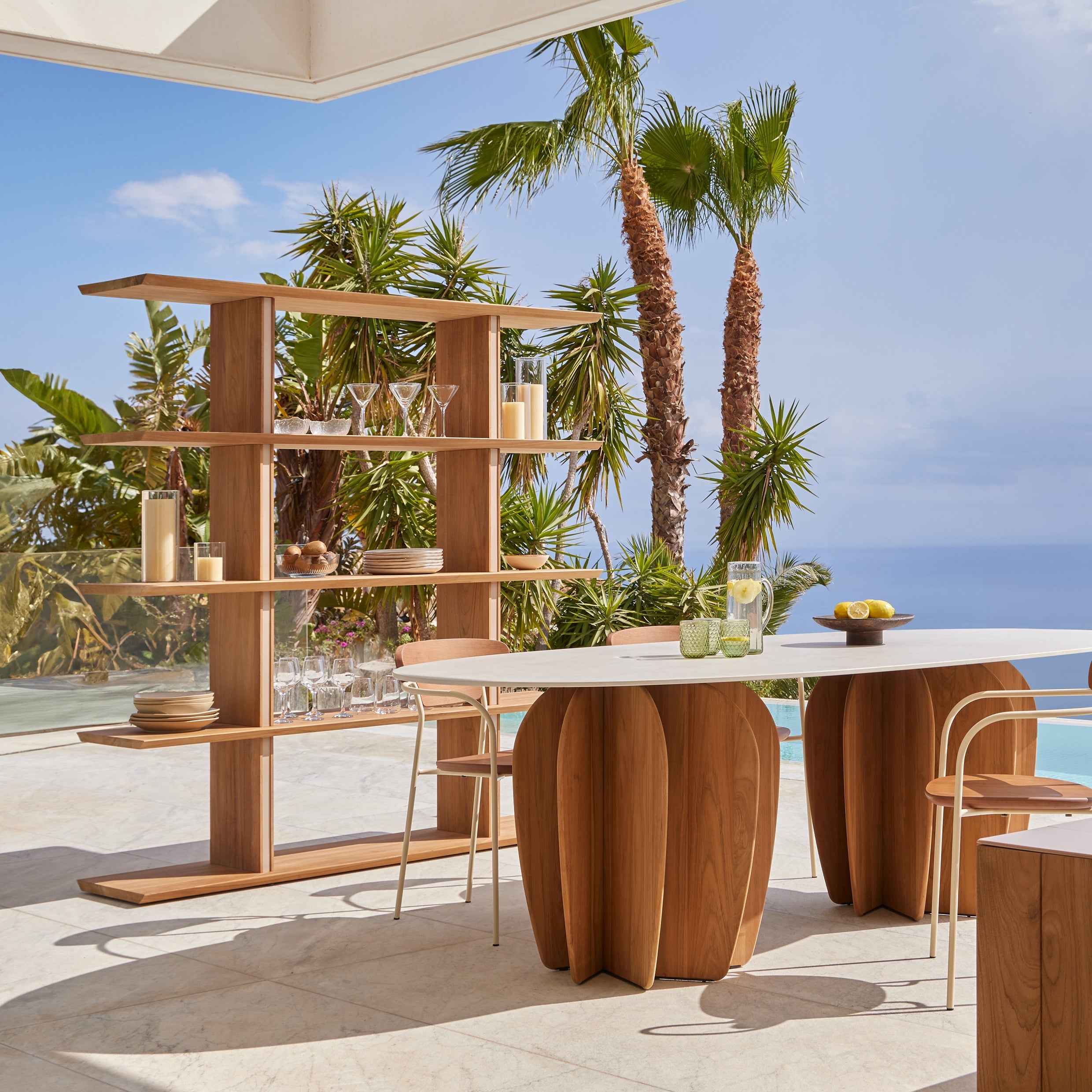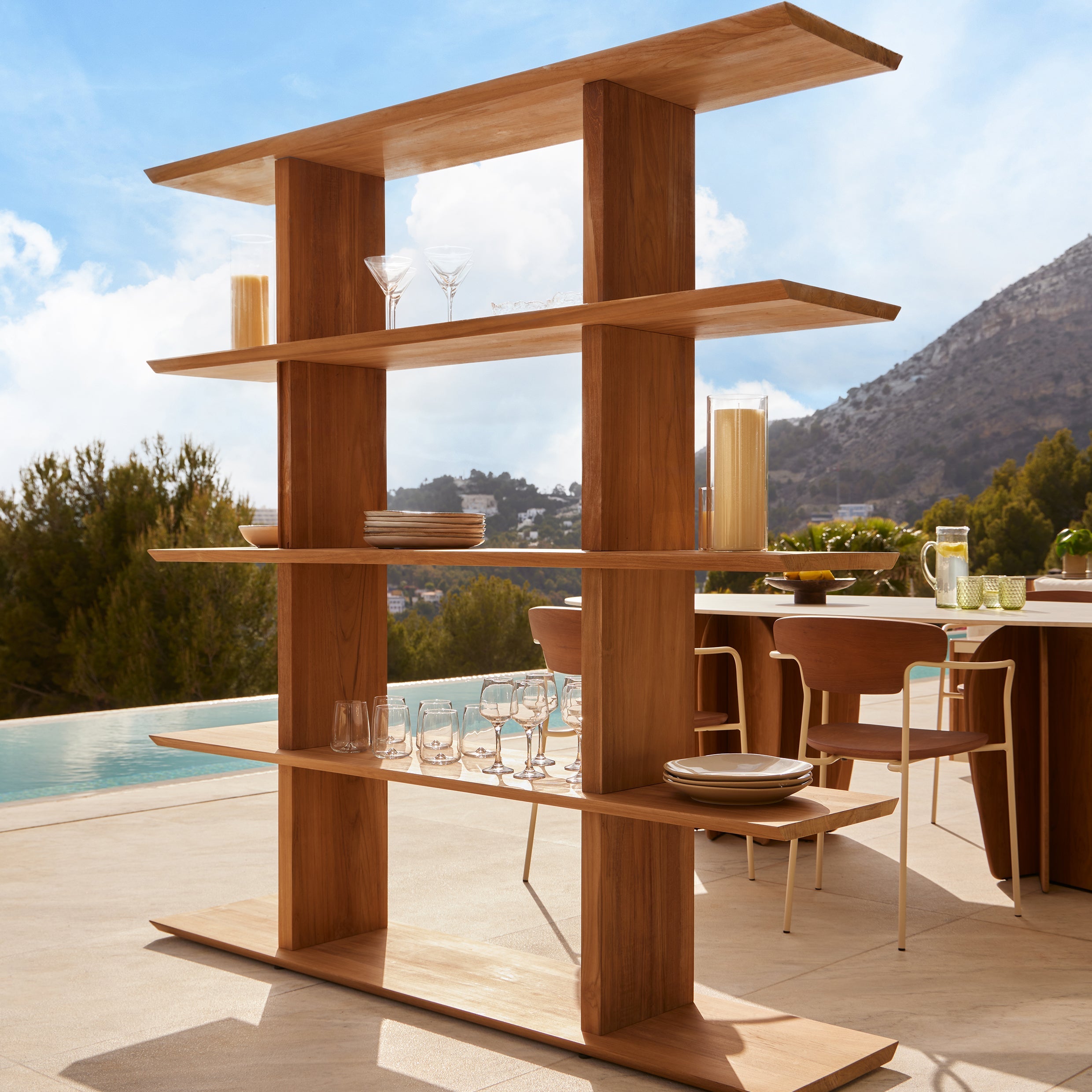 The Stockholm Bookshelf is a modular shelving system that combines functionality with refined aesthetics. Crafted from Teak, it features anodized aluminum sliding panels and trim, lending a distinctive touch to the design. The fixed shelves and adjustable feet ensure stability and adaptability, making it suitable for various settings, including homes, offices, hotels, and restaurants. This bookshelf can also serve as a room divider.
