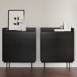 The Stockholm STH011 Cupboard is a distinguished piece from the Stockholm collection. This cupboard features two doors and is supported by a plinth with adjustable feet, ensuring stability on various surfaces. The top surface is adorned with a unique anodized aluminum finish, available in bronze, gold, black, or chocolate, adding a touch of elegance to the design. Constructed from MDF E1 fiberboard and low-formaldehyde particleboard, it is veneered in natural oak or walnut, offering a choice of finishes to complement diverse interiors. The cupboard includes height-adjustable shelves behind the doors, providing customizable storage solutions. The Stockholm STH011 Cupboard seamlessly blends functionality with a sophisticated design.