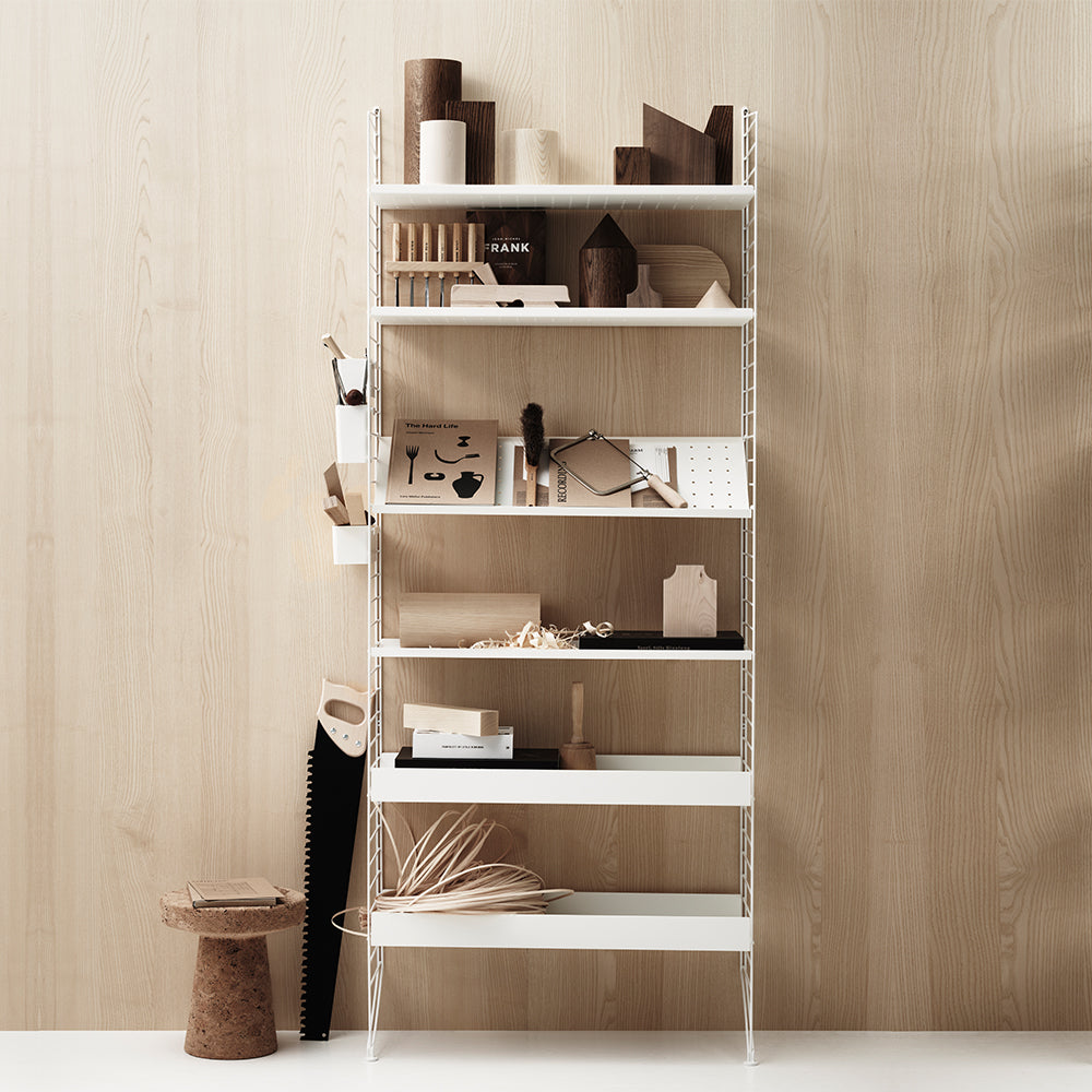 Based on a ladder-like, coated-wire framework, it was lightweight, versatile and redoubtably stable. Not to mention quick to assemble, easy to reposition and little trouble to transport. String was an immediate success far and wide—especially with a newly identifiable younger generation. Just a few years later, in 1950, the shelves were even ordered for the new UN headquarters in New York. String continues to produce the timeless original designs as well as updated versions for both residential and office spaces.