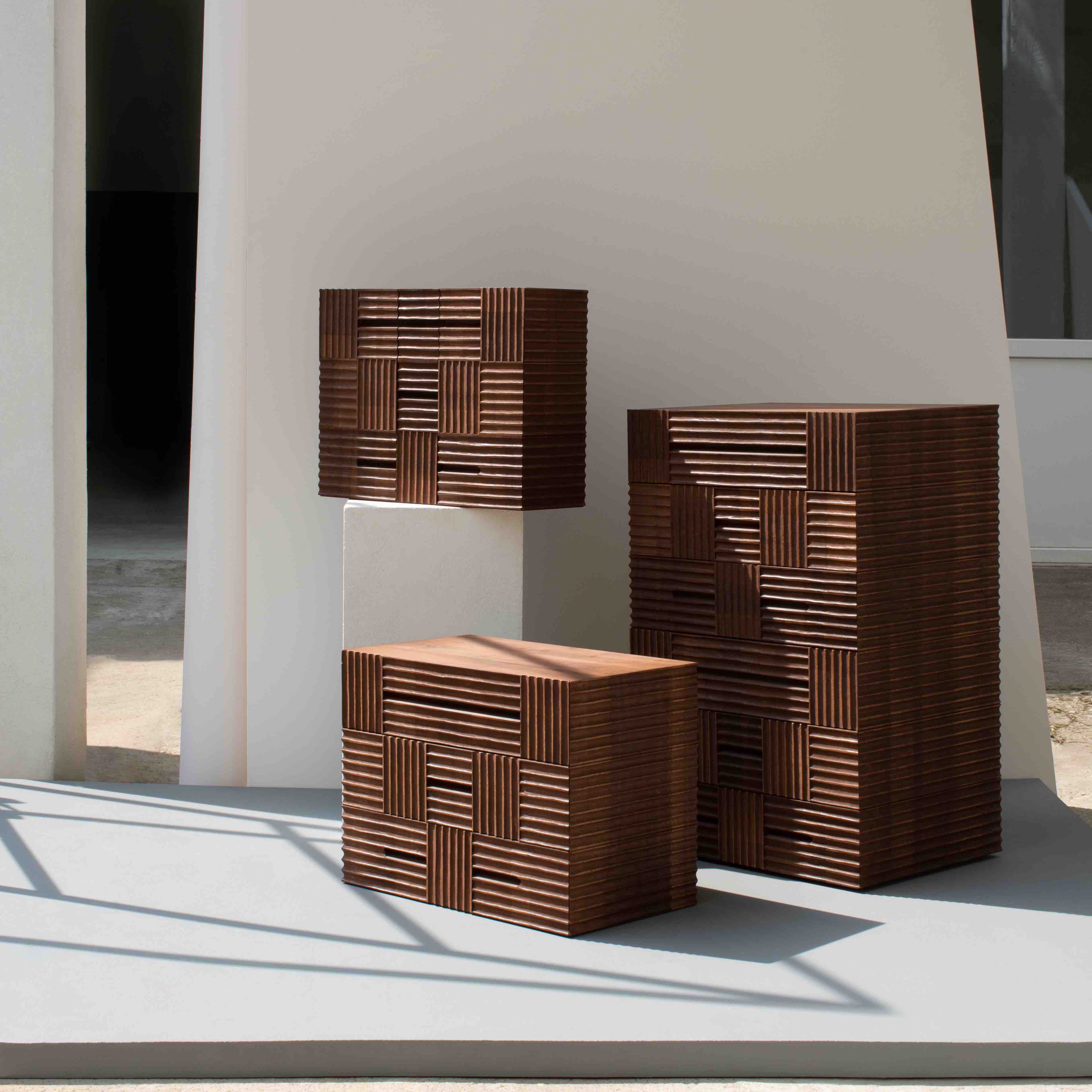 Kula in Bosnian means tower, fortification or home and Michele De Lucchi has created a namesake collection of wooden drawer chests based on the idea of creating building blocks. Reflecting Zanat's heritage of woodcraft, the designer creates an arresting effect with simple hand-carved grooves. Flawlessly enveloping the chests to create the unique 3-dimensional sculptural pieces, the perpendicularly positioned sections lend both a beautiful pattern and the warmth and tactility of a hand-made furnishing.