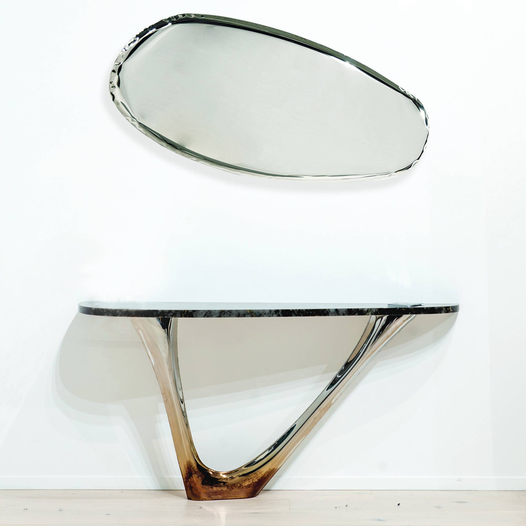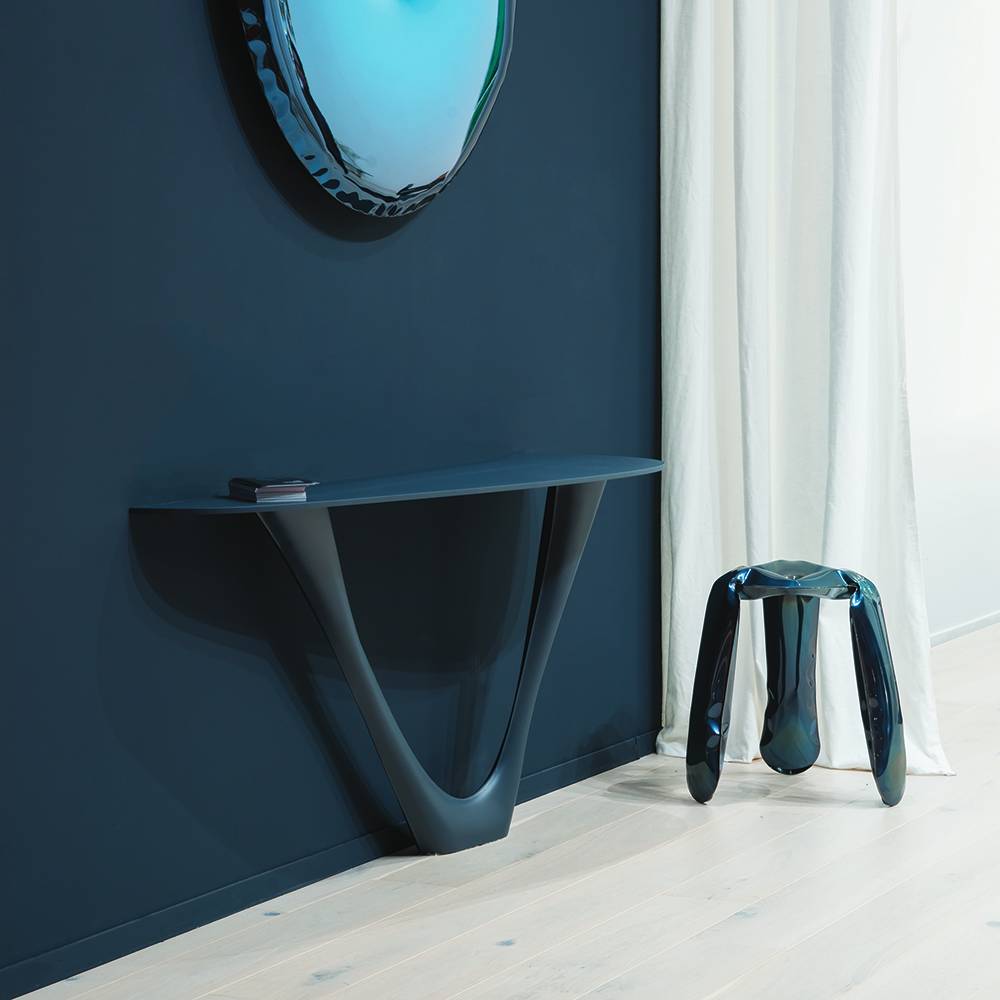 This console version adapts the eye-catching contours of Zieta’s signature G-Table for smaller spaces. Following the same design, Mono’s curved base suggests tree roots or a twisting vine with a fluidity made possible by FiDU technology which inflates thin steel sheets into expressive rounded forms. In any setting, the console puts a modern spin on the timeless harmony found in nature.