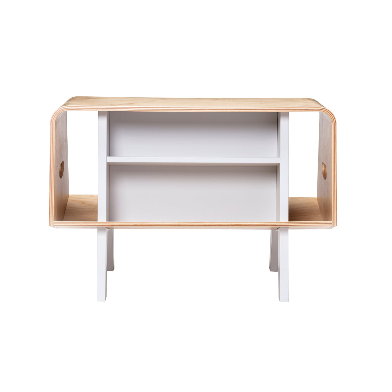 Japanese design duo Shin & Tomoko Azumi proffer a contemporaneous take on London maker Isokon’s iconic side table-bookcase by Egon Riss from 1939. Fashioned with a natural birch plywood enclosure and white-lacquered shelving, Donkey Mark 3 evokes a sense of playfulness with its proportions and attention to detail.