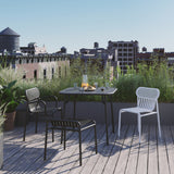 This square table seats 2 to 4 people for meals or game-time with an extra touch of stylish élan from the Week-End range of outdoor furniture. Hailing from French brand Petite Friture, it pairs with the winsome slat-backed matching armchairs or side chairs in the collection, all designed by Paris-based Studio BrichetZiegler. Easily stackable when not in use, the table is fabricated in aluminum with a matte-finish, grained and anti-UV powder-coat in a variety of desirable hues.
