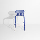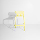 Week-End collection’s signature slat-motif seating adds a stackable high stool to pair with its corresponding bar table. Studio BrichetZiegler repeats the series’ familiar oval backrest and graphic mix of horizontal and vertical “stripes” fashioned in lightweight but durable aluminum. Also in the mix: Petite Friture’s delectable range of colors in an anti-UV powder coat with a matte finish.