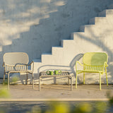 PRICE IF FOR 2 CHAIRS. For relaxing on the patio or sunning in the yard, this lounge chair melds generous proportions with the distinctive French style of Petite Friture. Designed by Paris-based duo Studio BrichetZiegler, the armchair pairs effortlessly with the collection's coffee table for an easy conversational grouping. The charming slat motif framed with an oval recalls traditional seating but its expression is purely contemporary, crafted in durable aluminum with a grained and anti-UV powder-coat in a matte finish.