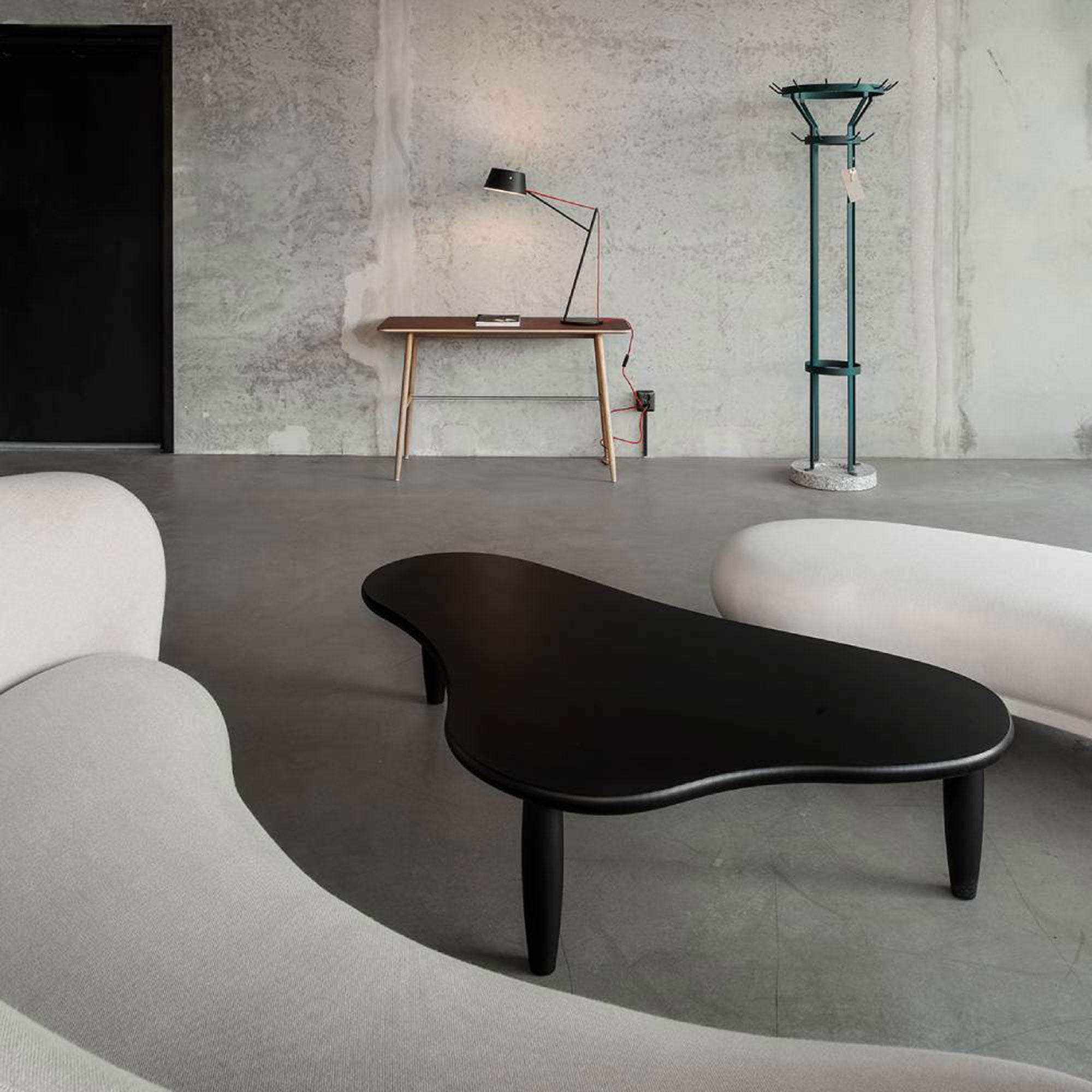 With a beautifully undulating shape, rounded legs and softly beveled edge, Massproductions' coffee table makes an admirable statement. Puddle Table was inspired by its namesake watery forms on sidewalks, according to its designer Chris Martin, as well as by Finnish architect Alvar Aalto's classic vases. In natural pale oak or black-stained ash, the table adds a relaxed element to geometric furniture arrangements.