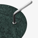 The Halten SH9 Side Table, designed by Sebastian Herkner, is built with thoughtful precision and emphasizes material contrasts, combining a sturdy base with a top that brings warmth and subtle texture. This variation features a marble top. From living rooms to lobbies, this table serves as both a practical surface and a decorative element. Available in warm black or polished stainless steel, the SH9 maintains a focus on high-quality materials and careful detailing.