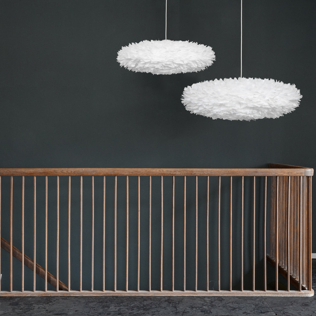 Esther appears as a slim and elegant feathery cloud floating below the ceiling. The oval pendant can be rotated and hang at 4 different angles, mesmerizing on its own or in dramatic groupings with other sizes and shapes from Eos, the line of recycled feather-covered lights from Danish maker Umage. Suggested by Greek mythology and named for the goddess of the dawn, designer Soren Ravn Christensen's creation spreads warmly diffused illumination and is available in 2 sizes. Flat-packed for eco-conscious shipping, its easily assembled and requires but a gust of air from a hairdryer for easy cleaning.