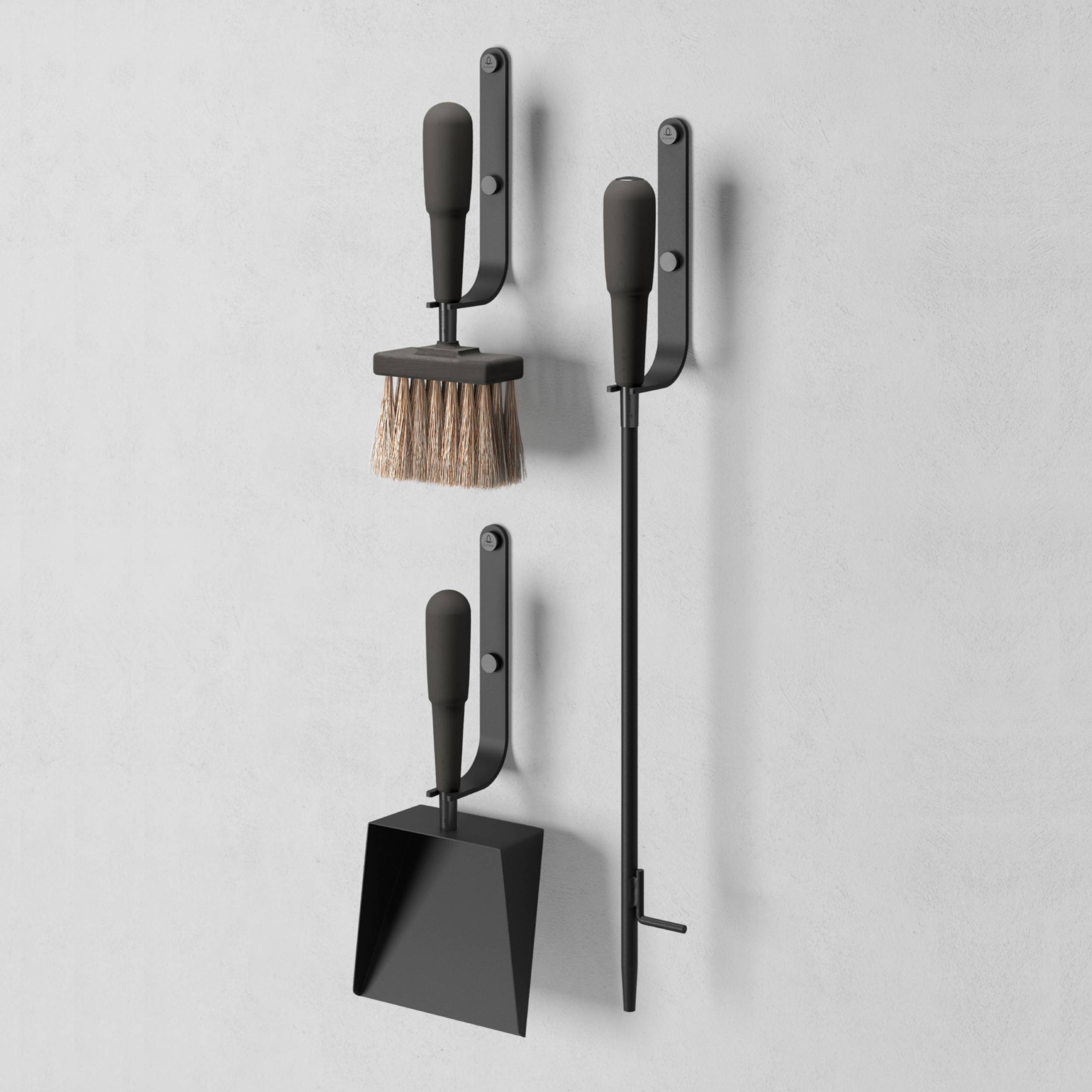 With the same refined spirit as companion Emma collection offerings, this beautifully simple wall hook works for either the Shovel & Brush or the Blowpoker to keep the fireplace implements close at hand. It is available in two colors and is gorgeously crafted by Eldvarm in brass and powder-coated metal.