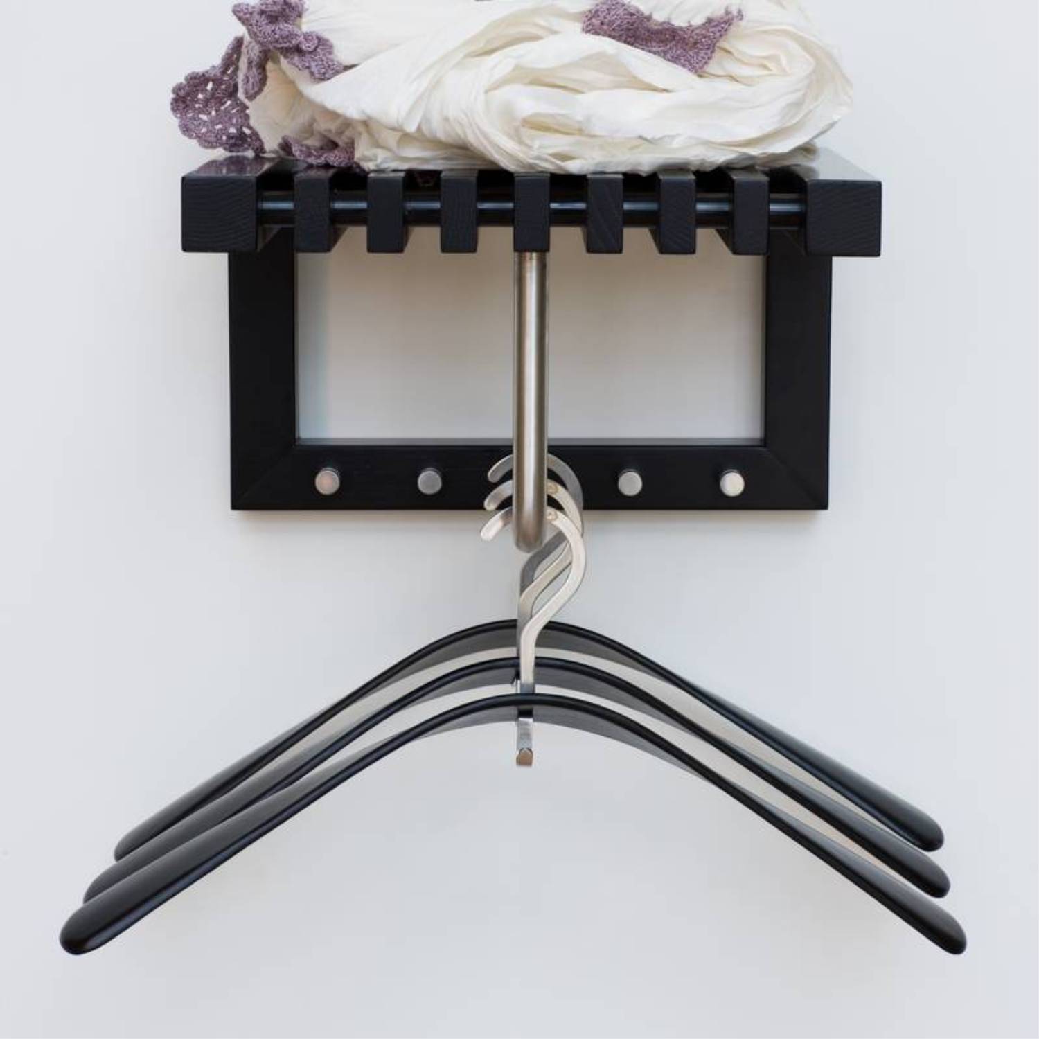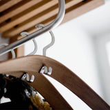 London-based designer Nina Tolstrup has a creative portfolio that spans everything from architecture to jewelry. Not surprisingly, she offers a thoughtfully sleek Pilot coat hanger for Copenhagen’s Skagerak with a wing-formed coat profile in steam bent wood and stainless steel. And it has an additional hook affixed underneath for scarves, bags or neckties.