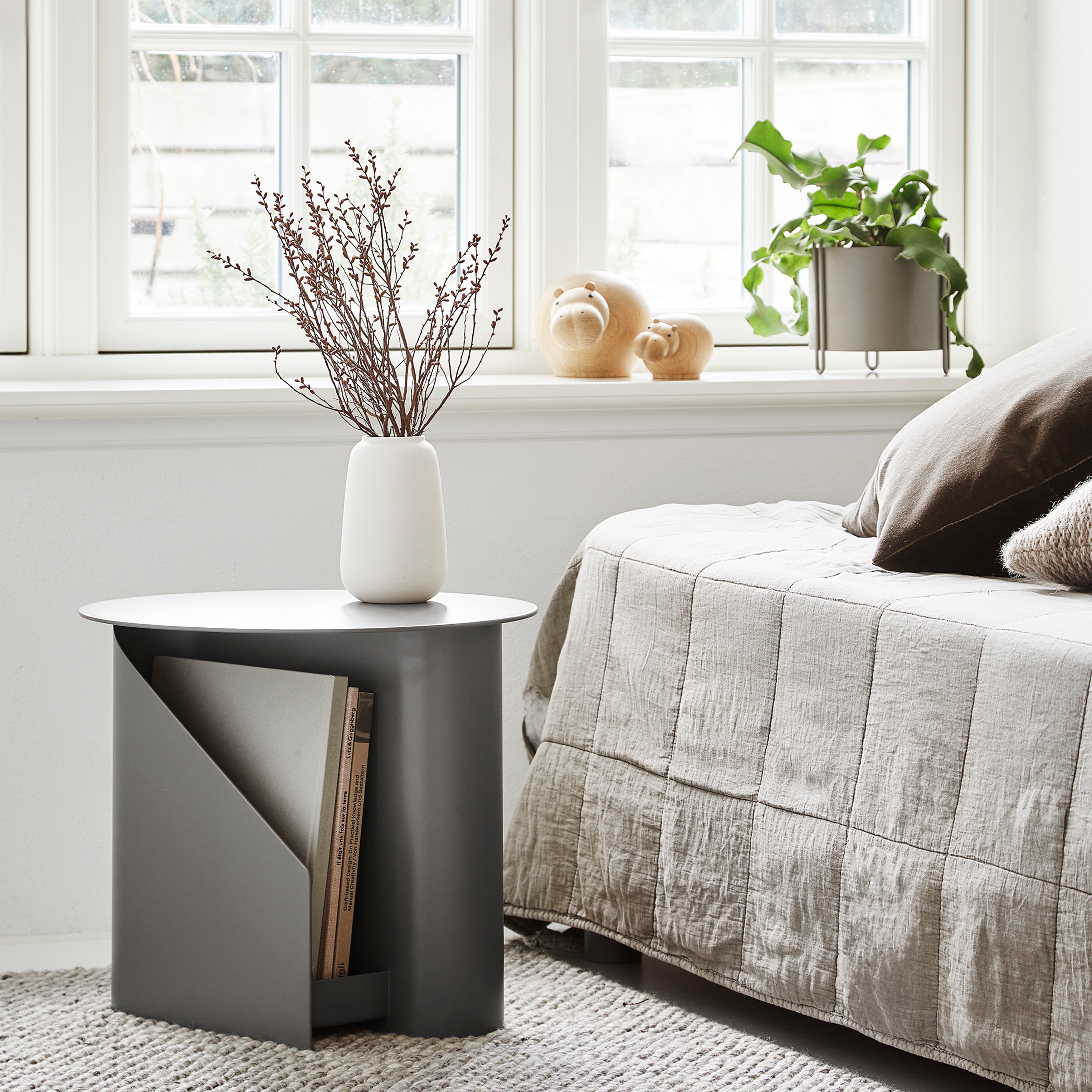 With an S-shaped construction as the base, designers Maximilian Schmahl and Fabian Schnippering meld both practical and theoretical qualities in their sleek metal side table. The pared-down simplicity of Sentrum stands as a visual statement on its own and the geometric swirl creates roomy storage spaces on both sides. A second consideration for the designers is creating objects that people happily interact with as a part of daily life—and with its eye-catching design and useful functionality, this atypical furnishing scores high on the contentment scale.