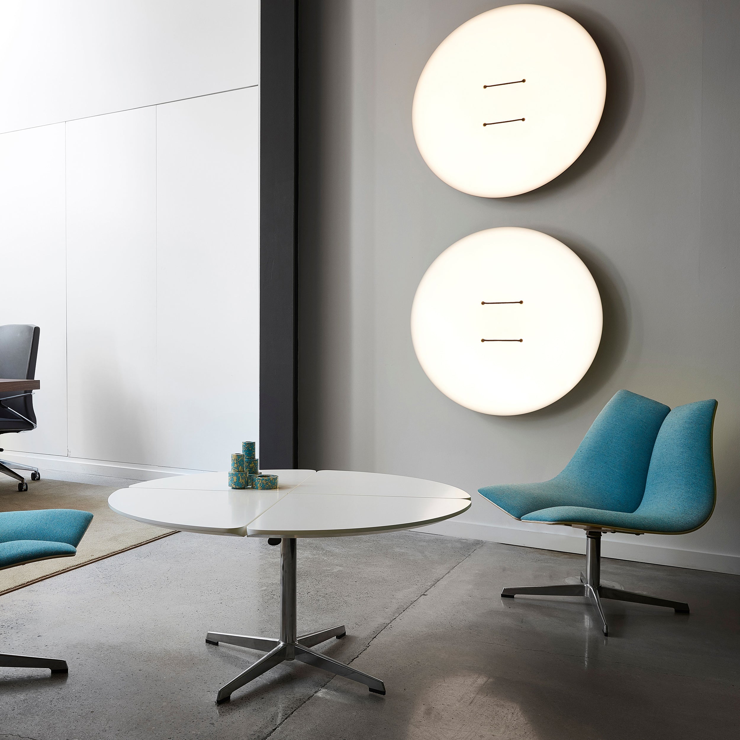 Designer Lukas Peet adapts his striking LED light Button to a surface-mounted version for either wall or ceiling. Fully dimmable, the flat circular fixture casts a warm and inviting light. Elegant yet playful, it’s available in a choice of metallic finishes as well as cool black or white.