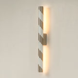 A lacquered spiral wraps around the tubular brass structure, introducing a bold contrast that enhances the wall light’s sculptural presence. Precision-crafted from solid brass, this fixture demonstrates careful attention to surface detail and material finish. Available in satin brass, copper, graphite, and nickel, it includes an integrated 9W LED that emits a warm 840 lumens at 2700K.