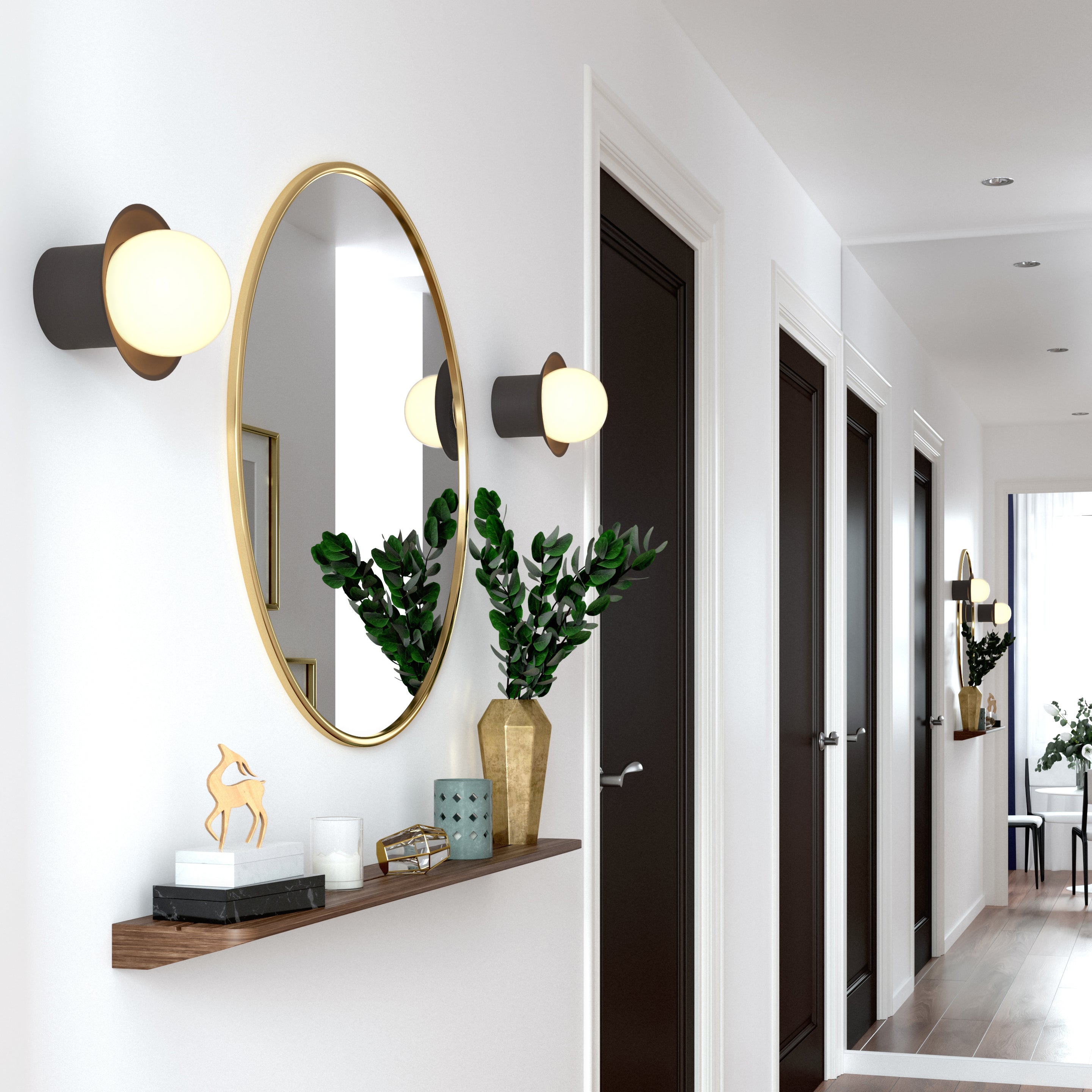 Designer Émilie Cathelineau’s glowing opaline wall fixture adds a larger version for greater illumination as well as maximum visual impact. Janed’s saucer-like backplate and column mount are made of solid brass and available in the full range of CVL’s luxurious metal finishes. Handmade in France’s Loire Valley, the wall lamp features a mouth-blown opal glass diffuser for warmly even LED illumination.