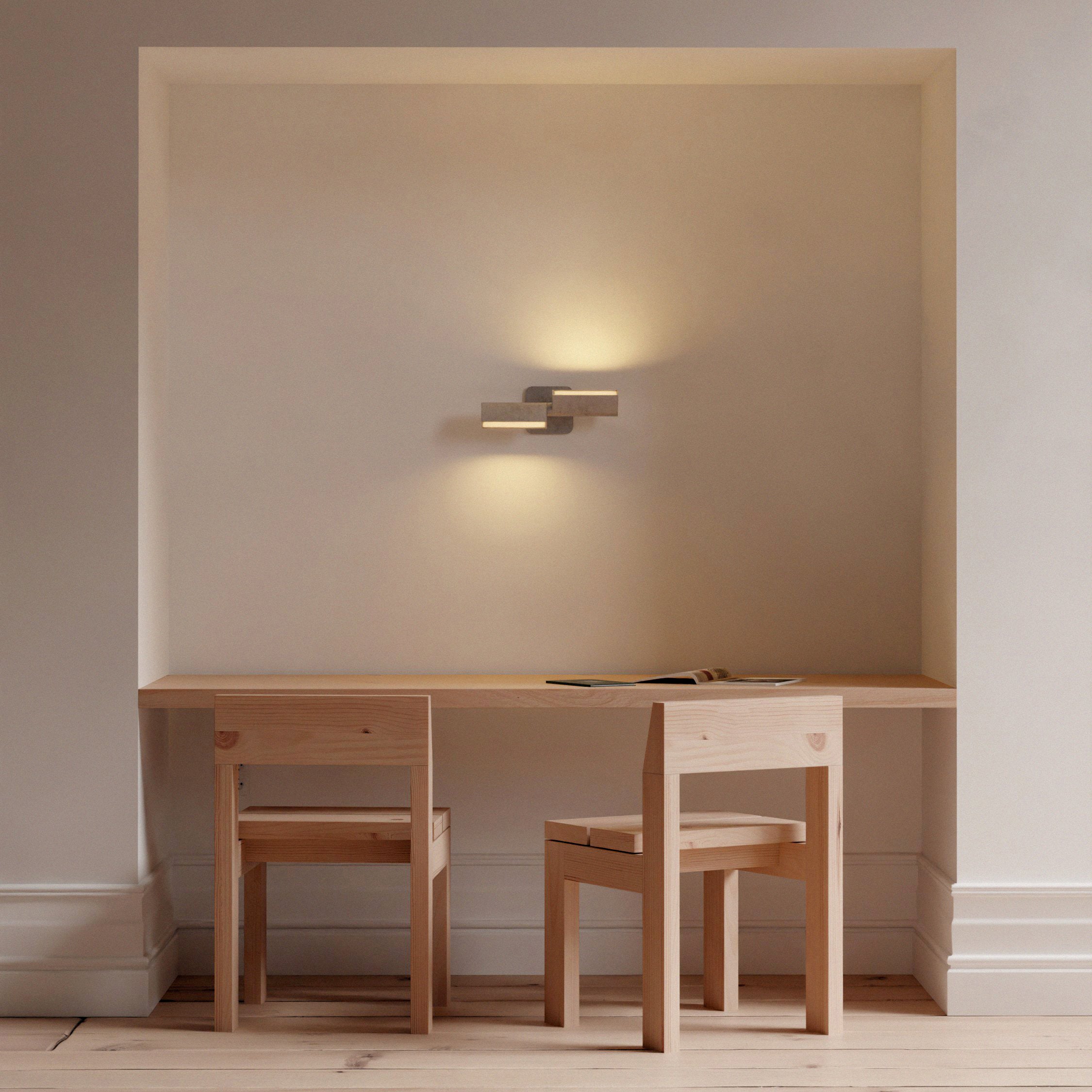 The Ipoli 02 Double Wall Lamp features two rounded aluminum heads mounted on a slender base, each capable of swiveling to direct light where needed. Designed for adaptability, it functions well as a task or ambient light in a variety of settings. Made from tumbled or powder-coated aluminum, it comes in finishes like poppy red, beige, black, and textured aluminum. Each head includes a touch dimmer at the end for adjusting brightness and color temperature. The fixture offers warm, accurate illumination and maintains a slim profile suited for both personal and shared spaces.