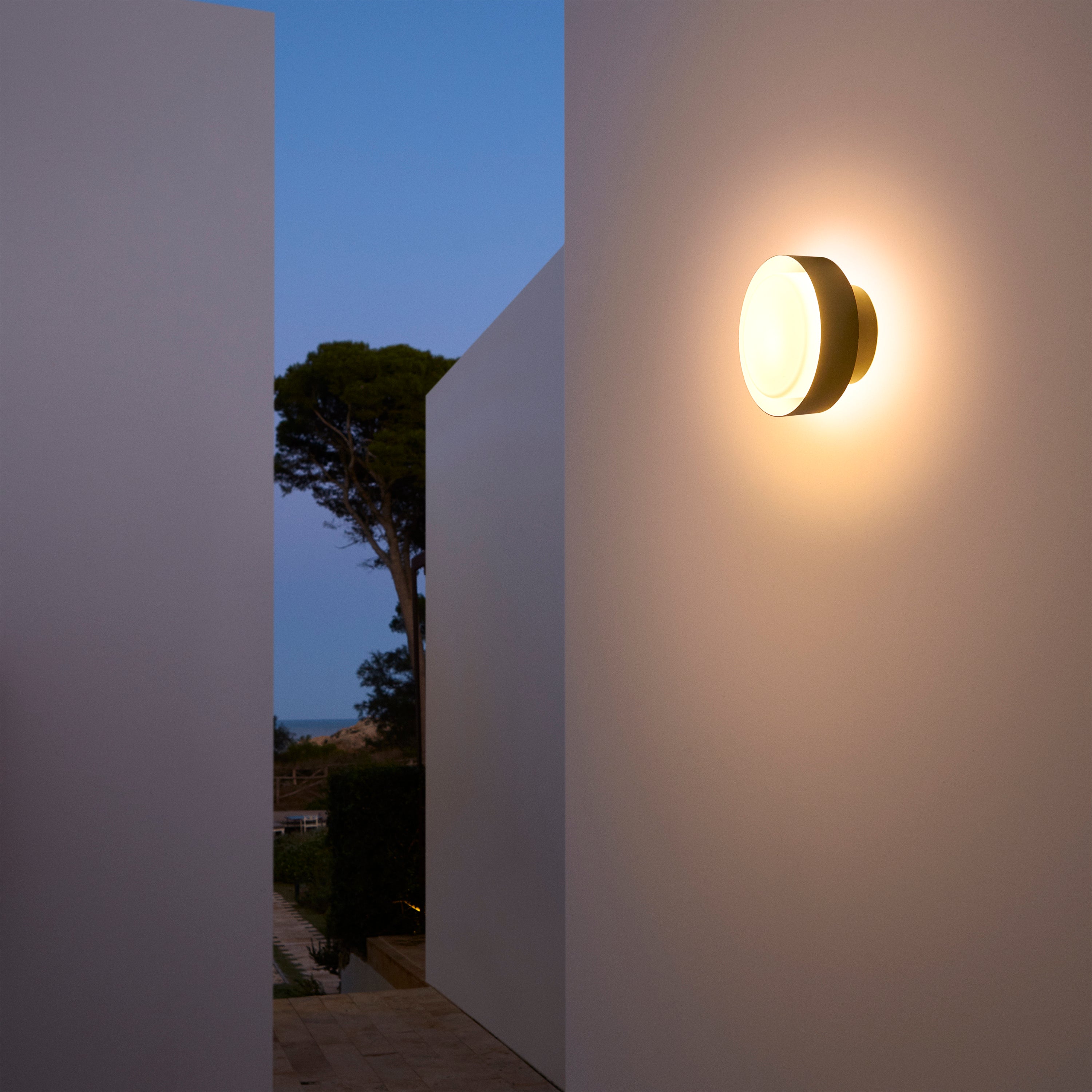 Designer Joan Gaspar expands the Plaff-On! possibilities with a usefully conceived outdoor wall version. Marset’s blown-glass diffuser appears to float, detached from the circumference that surrounds it, creating a luminous LED halo of light. The Plaff-On! outdoor fixture is suitable for all wet locations, making it perfect for bathrooms as well.